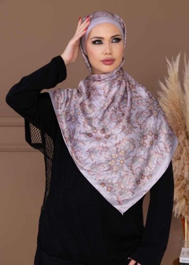 Kül Rengi Ebru Desen Pamuk Soft Eşarp