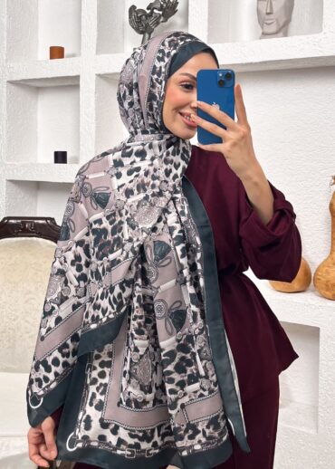 Hermes Leopar Pamuk Soft Şal 65329 – SİYAH- AÇIK LATTE