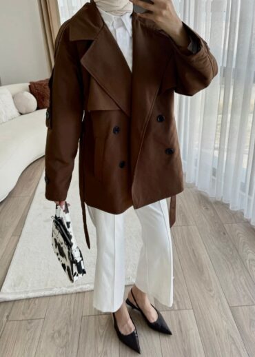 Oversize Omuz Detay Trençkot DŞ100235 – Acı kahve