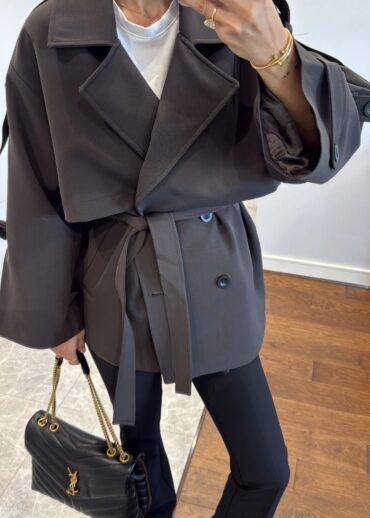 Oversize Omuz Detay Trençkot DŞ100235 – Füme