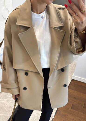 Oversize Omuz Detay Trençkot DŞ100235 – Camel