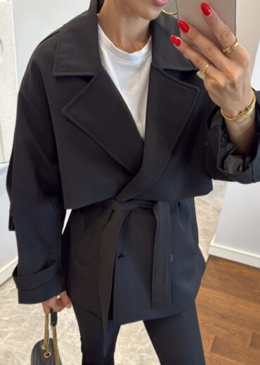Oversize Omuz Detay Trençkot DŞ100235 – Siyah