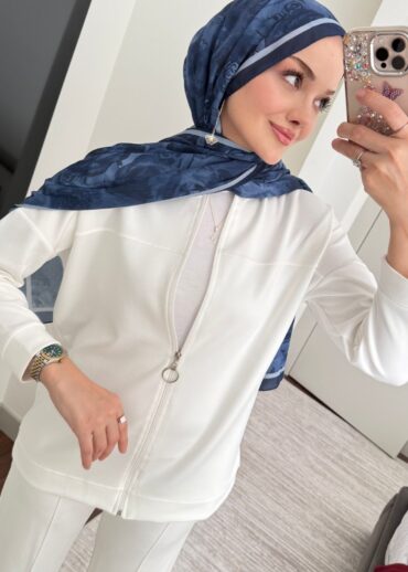 Oysho Fermuarlı Basic İkili Takım BÜYÜK BEDEN TK2962 – Beyaz İnci
