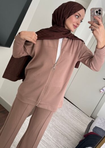Oysho Fermuarlı Basic İkili Takım BÜYÜK BEDEN TK2962 – Karamel