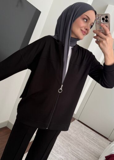 Oysho Fermuarlı Basic İkili Takım BÜYÜK BEDEN TK2962 -Siyah