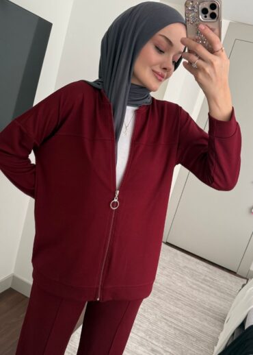 Oysho Fermuarlı Basic İkili Takım BÜYÜK BEDEN TK2962 – Bordo