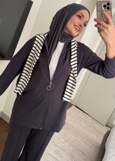 Oysho Fermuarlı Basic İkili Takım BÜYÜK BEDEN TK2962 – Füme