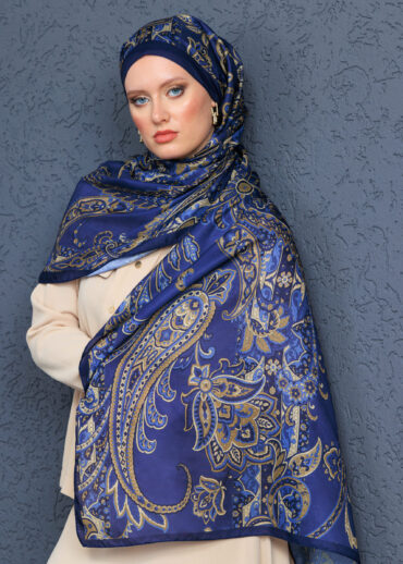 İnci Gecesi Desen Pamuk İpek Şal-10004-GECE MAVİSİ