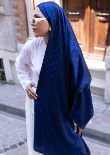 Pamuk İpeksi Jakar Şal-53354-Lacivert