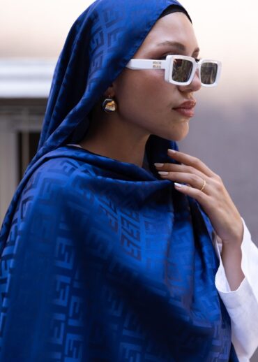 Fendi Desen Pamuk İpeksi Jakar Şal-53354-Lacivert