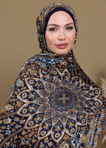 Deryanın seçimi Petrol Zambak Desenli Yün İpek Şal