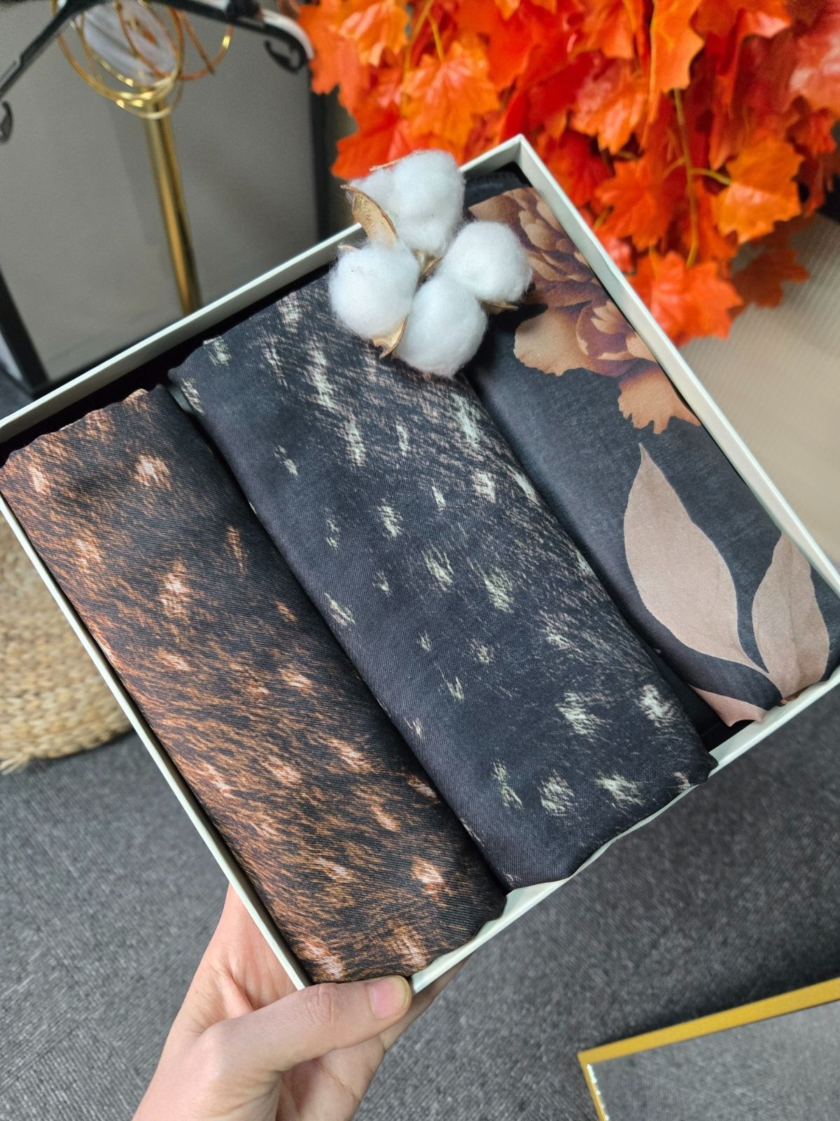 Zamansız şıklığı ve doğallığı bir araya getiren 3’lü Şal Kutusu, uyumlu doğal tonlarıyla her stile kolayca eşlik eder. Günlük kullanımdan özel günlere kadar her an için ideal olan bu set, hem kendiniz hem de sevdikleriniz için şık bir hediye alternatifidir.