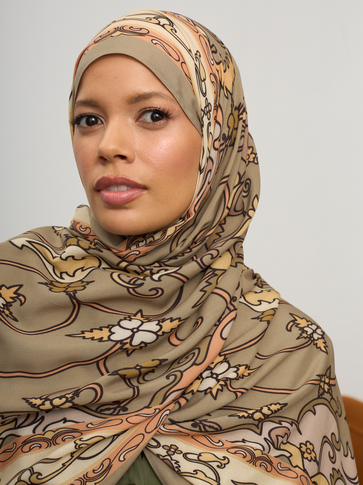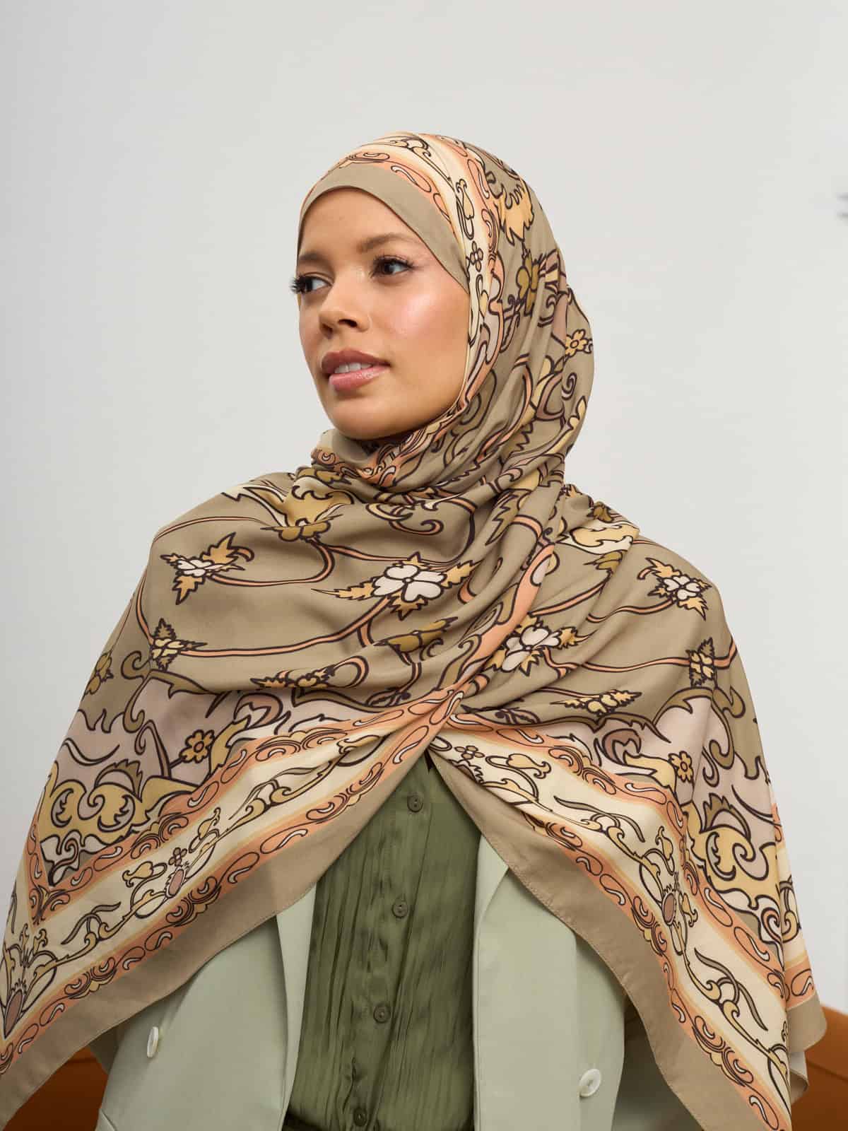 Bej İberya Işığı Desen Pamuk İpek Şal