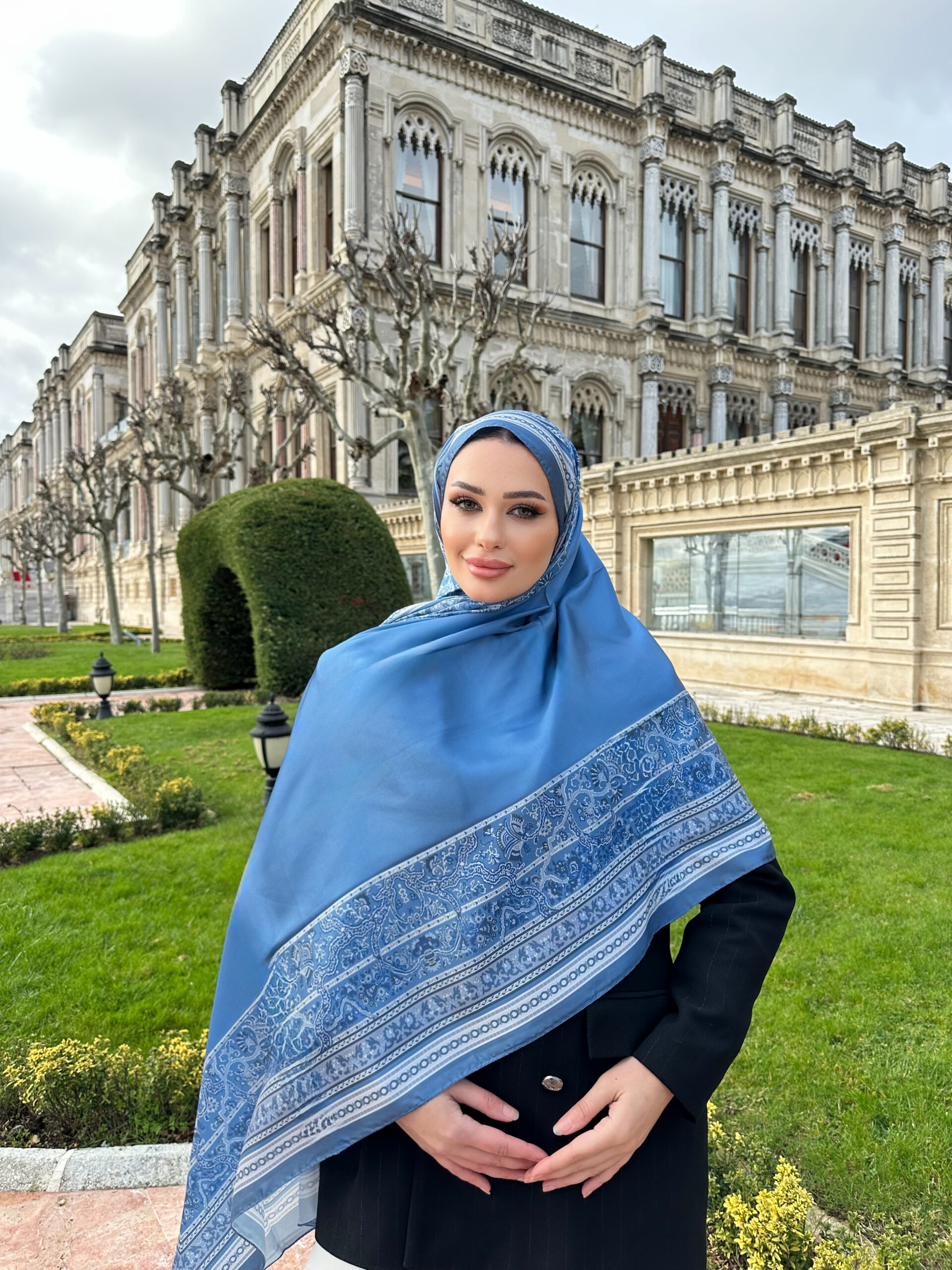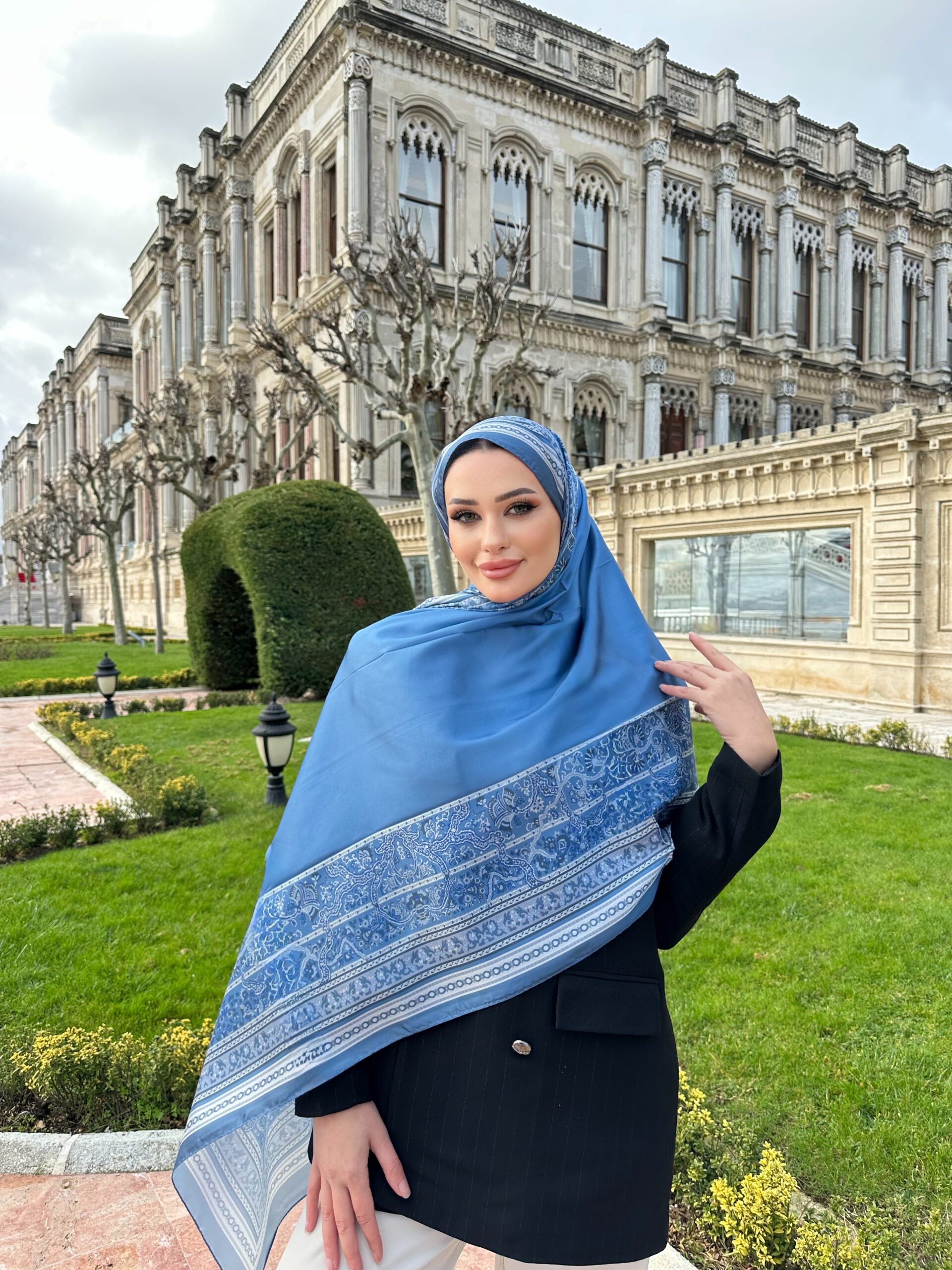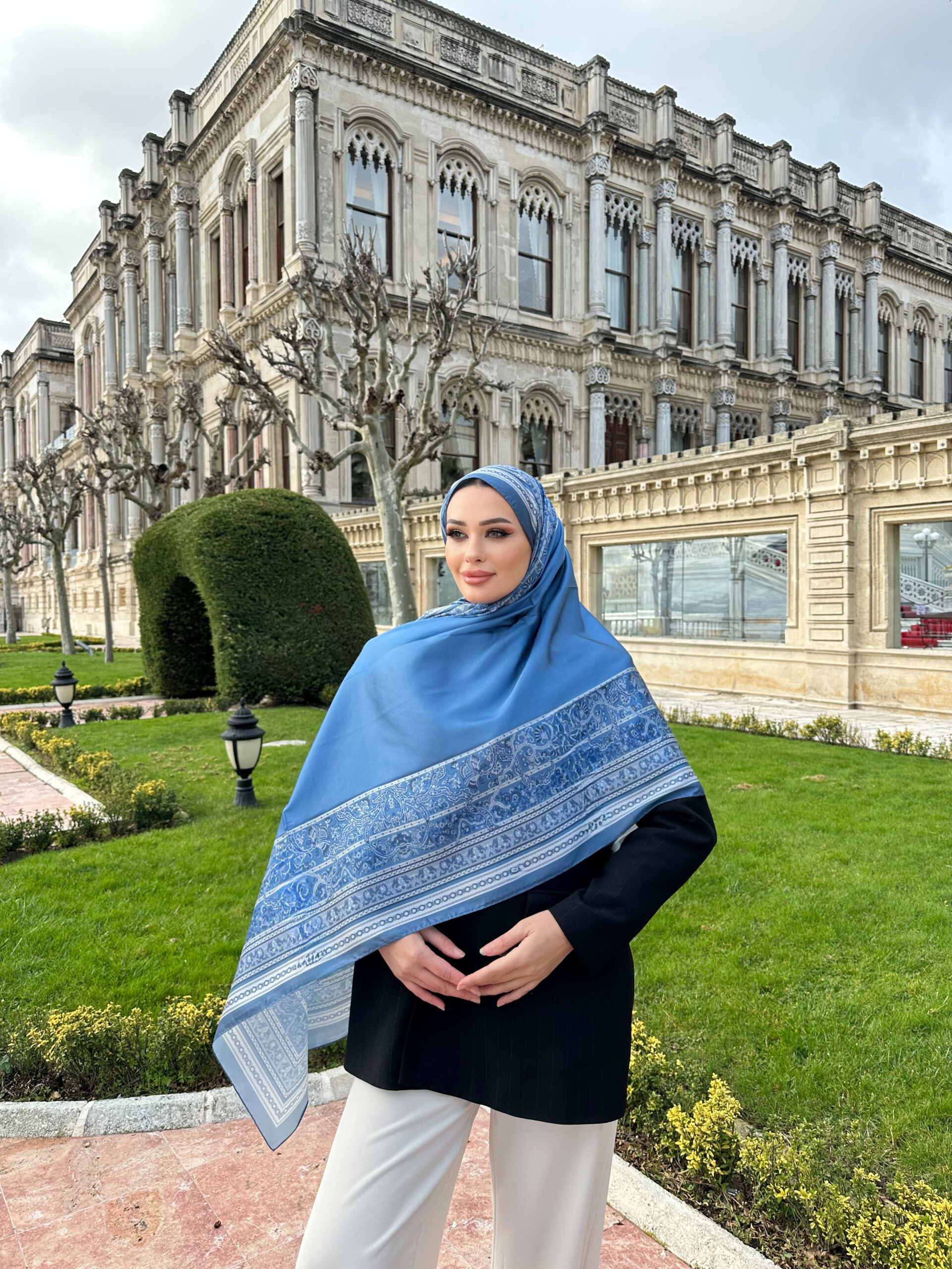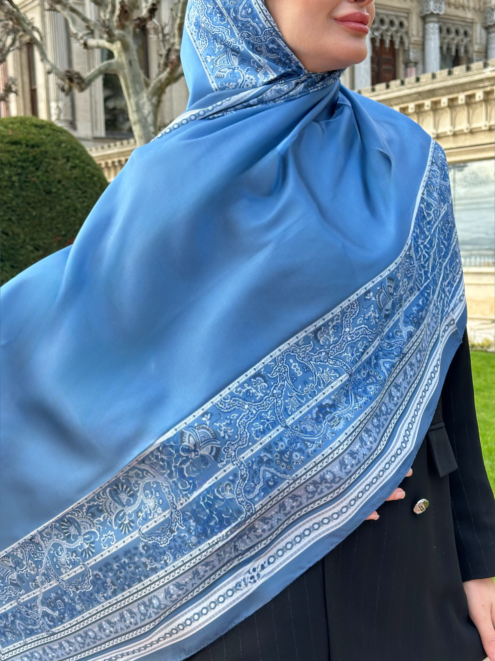 Çini Rüyası Vual İpek Şal 10101 – Duman Mavisi