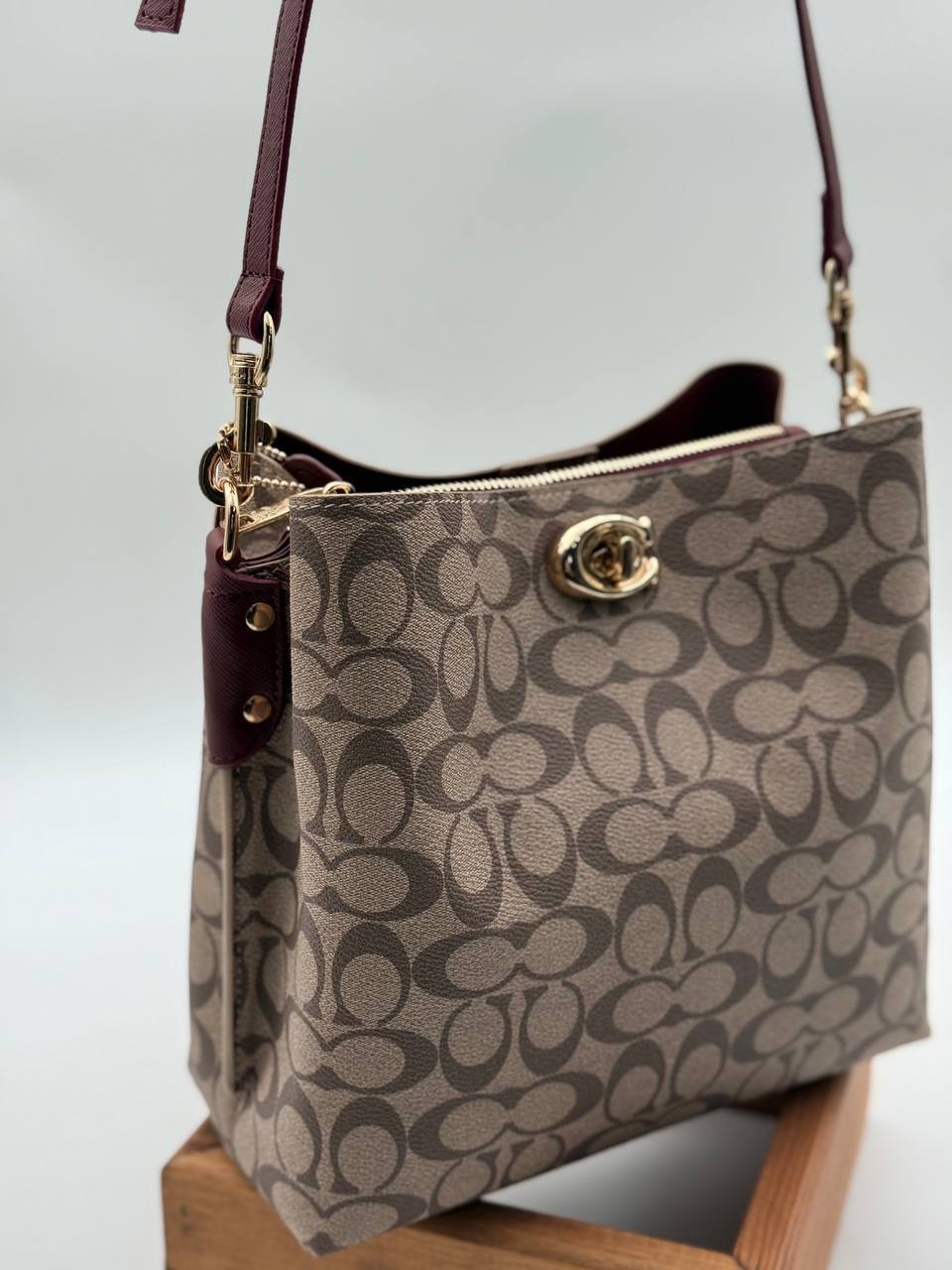 Coach Gofraj baskılı kilitli büzgülü bordo vizon çanta
