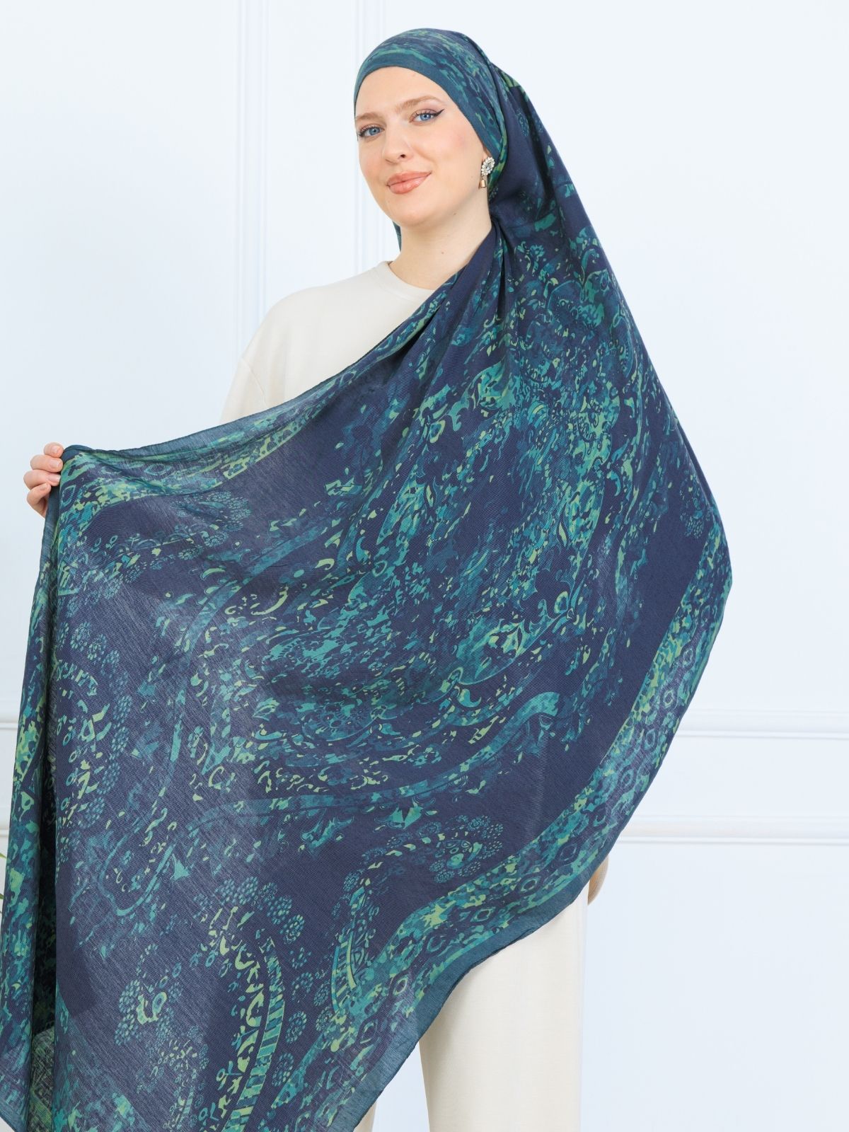 Derin Yansıma  model şal, doğadan ilham alan zarif desenleri ve yumuşak geçişleriyle stilinize romantik bir dokunuş katıyor. Modern ve klasik çizgilerin uyumunu yansıtan bu özel tasarım, her kombine kolaylıkla uyum sağlayarak şıklığınızı tamamlar.