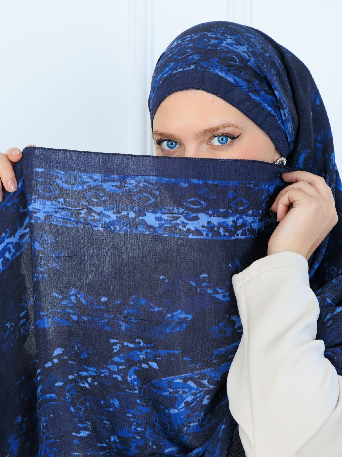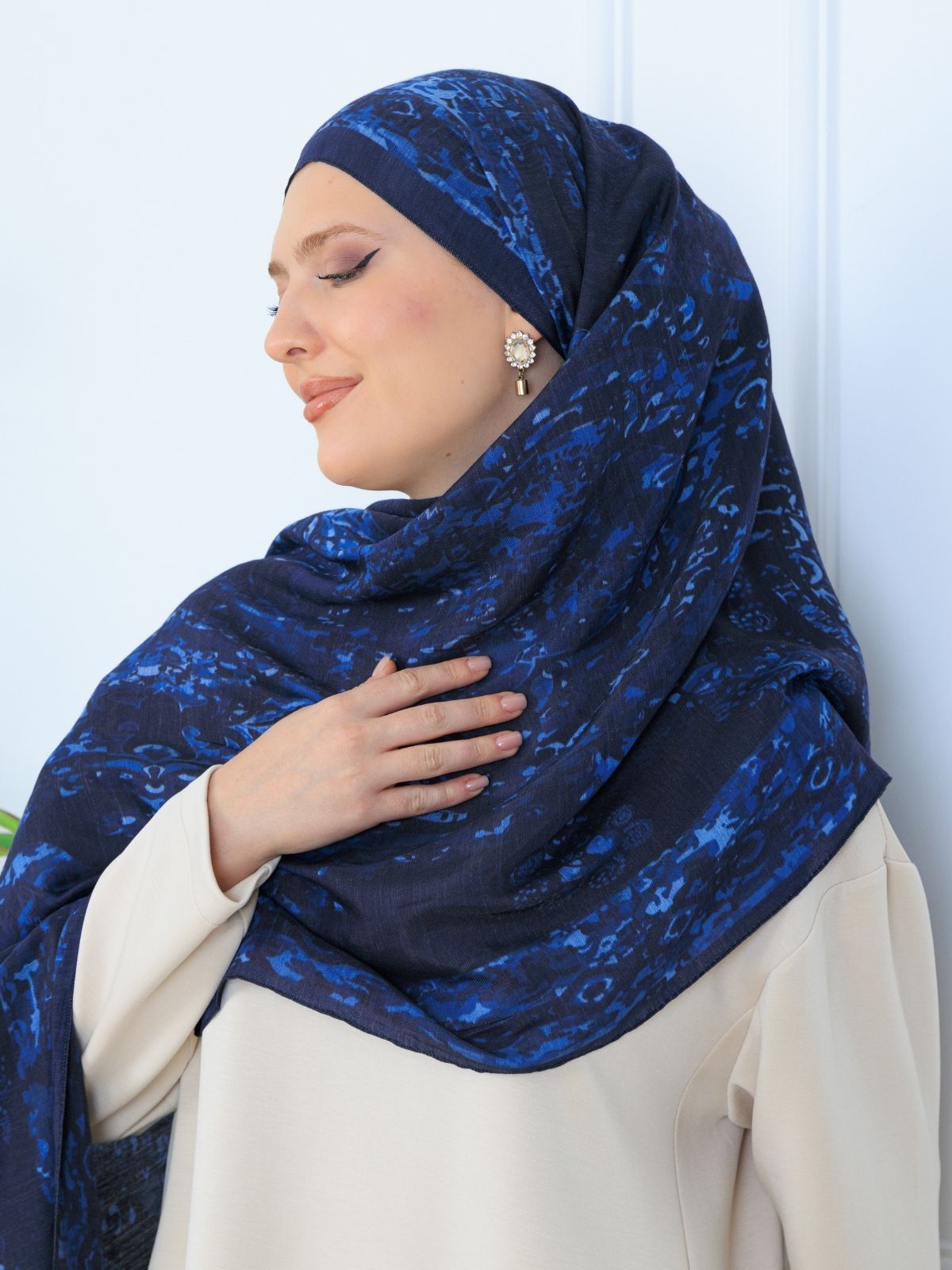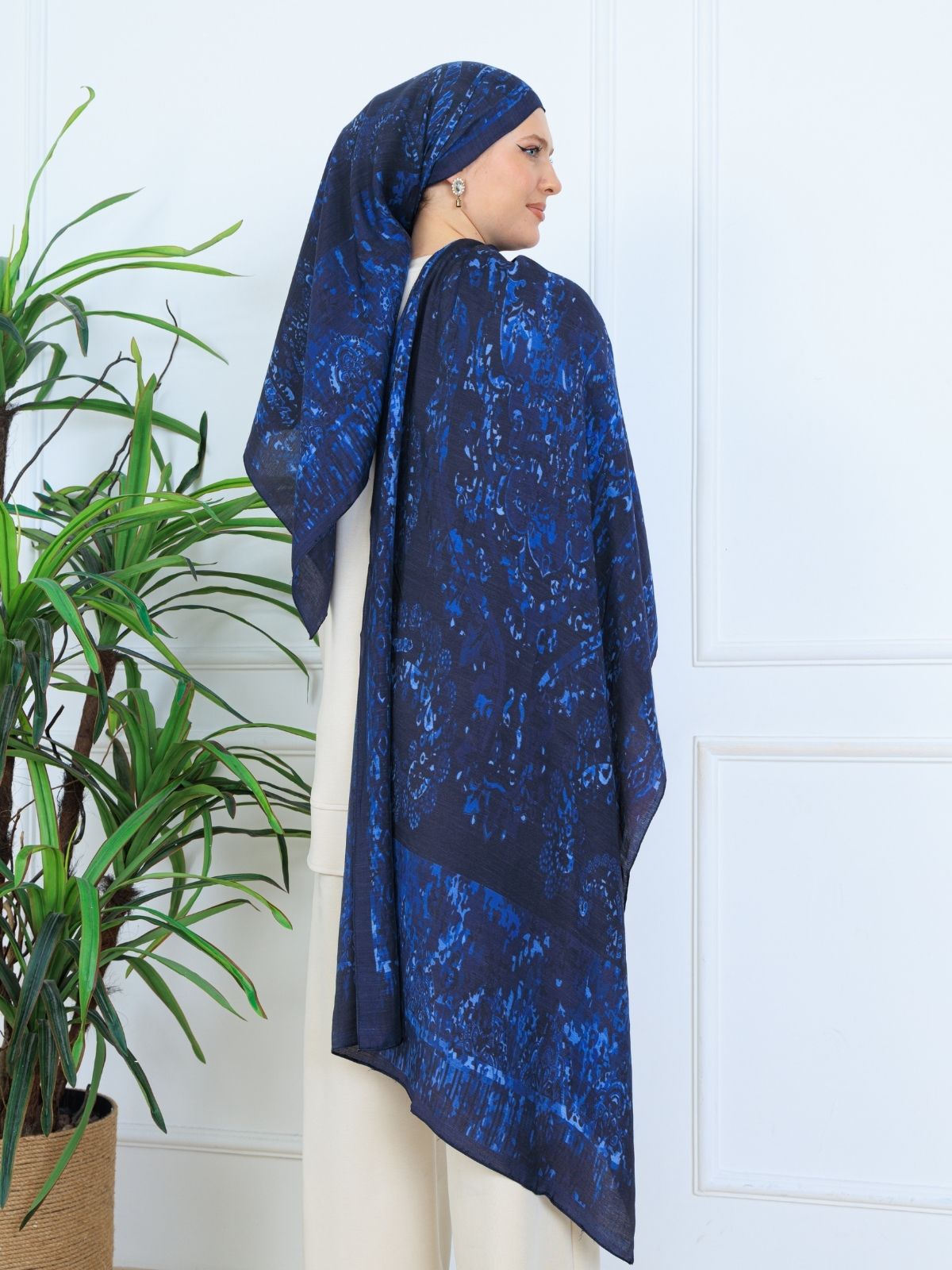 Derin Yansıma Desen Şal 469-017 – V-6 – Derin mavi – Touch İpek