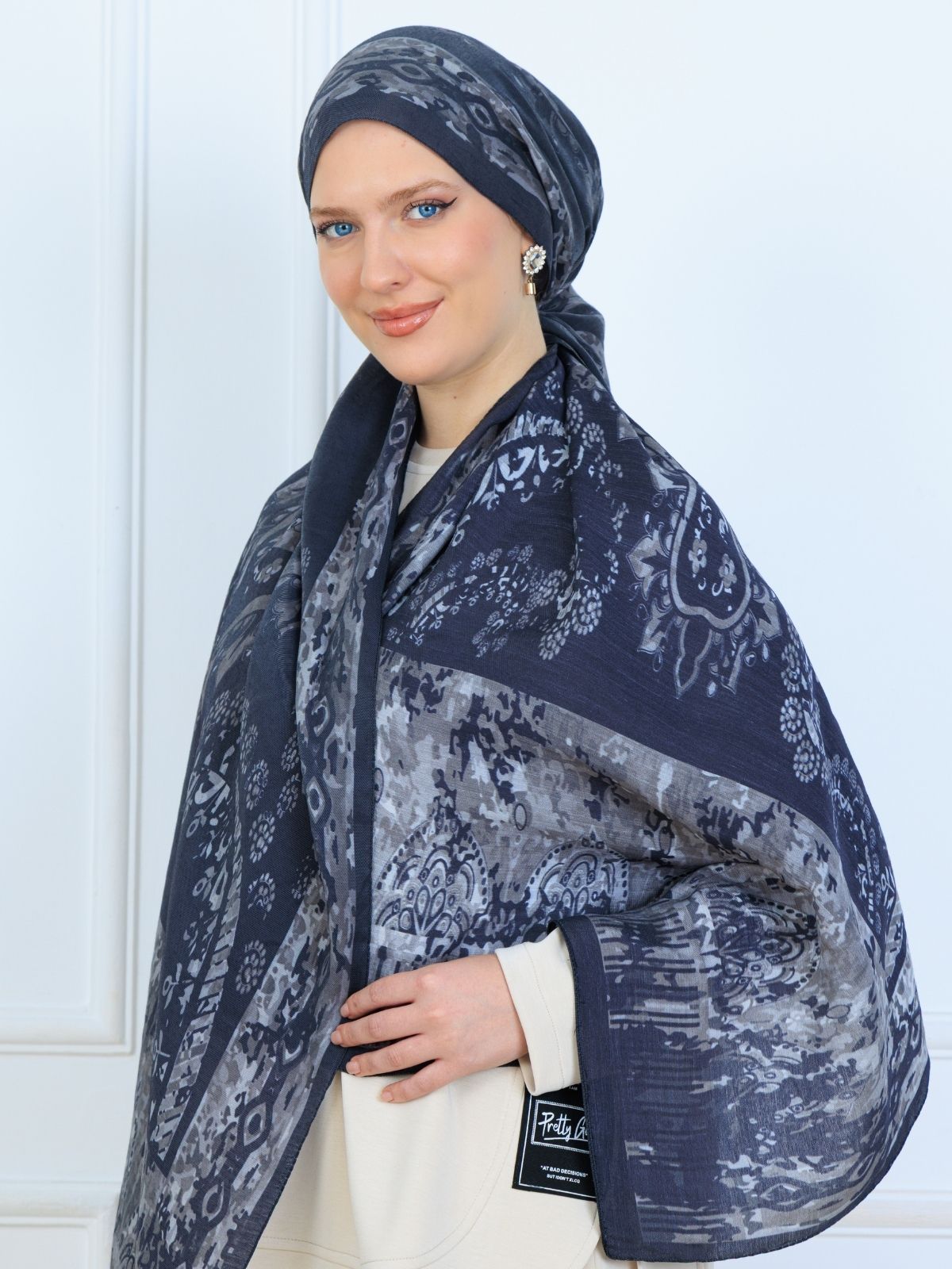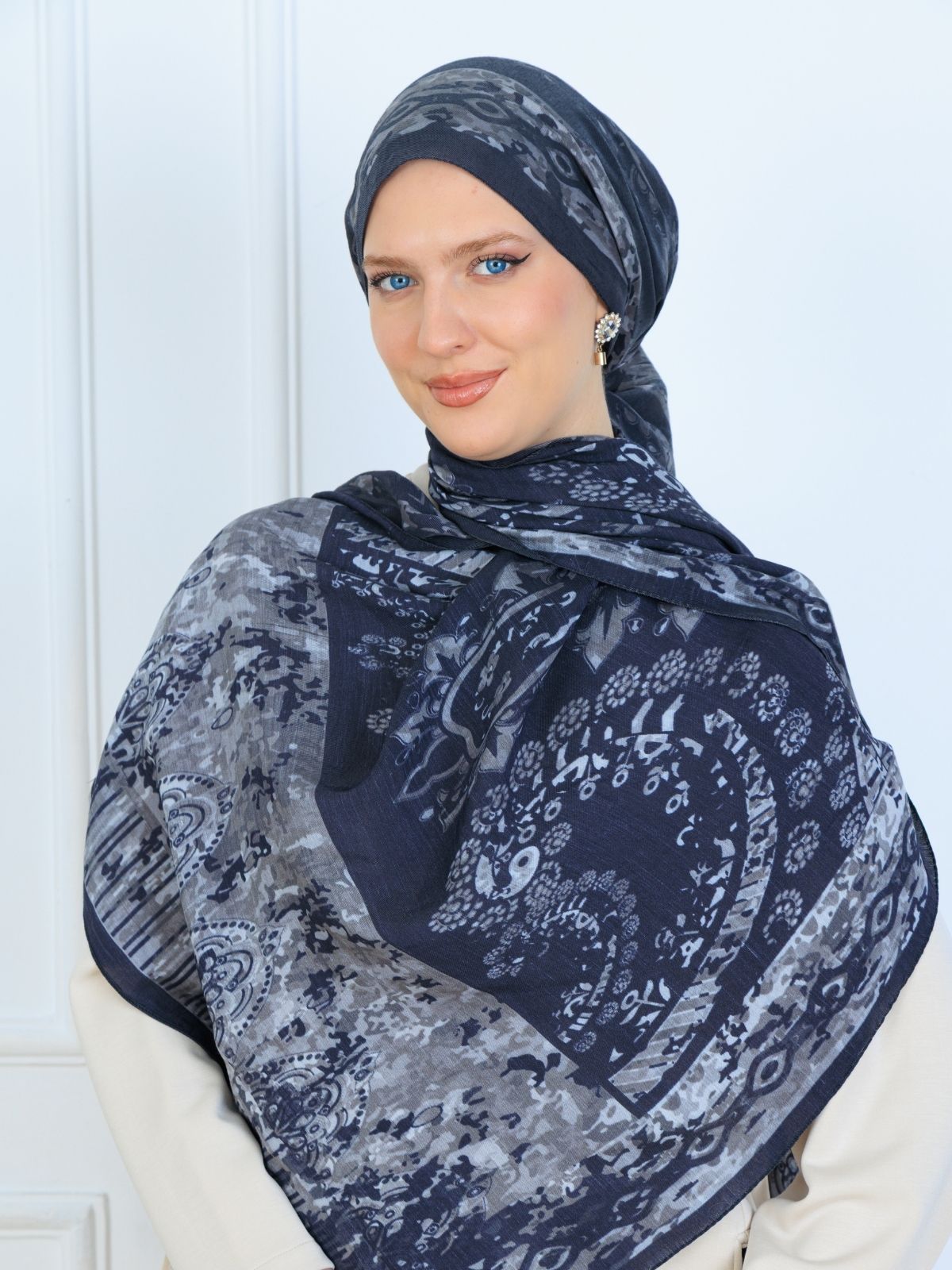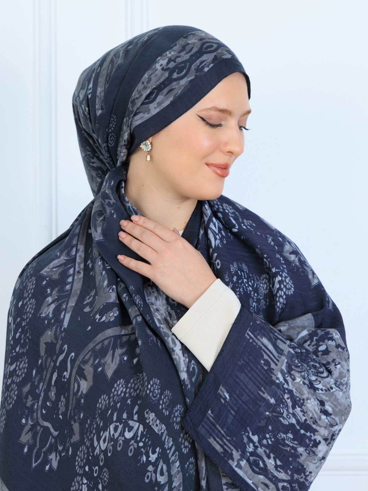 Derin Yansıma  model şal, doğadan ilham alan zarif desenleri ve yumuşak geçişleriyle stilinize romantik bir dokunuş katıyor. Modern ve klasik çizgilerin uyumunu yansıtan bu özel tasarım, her kombine kolaylıkla uyum sağlayarak şıklığınızı tamamlar.