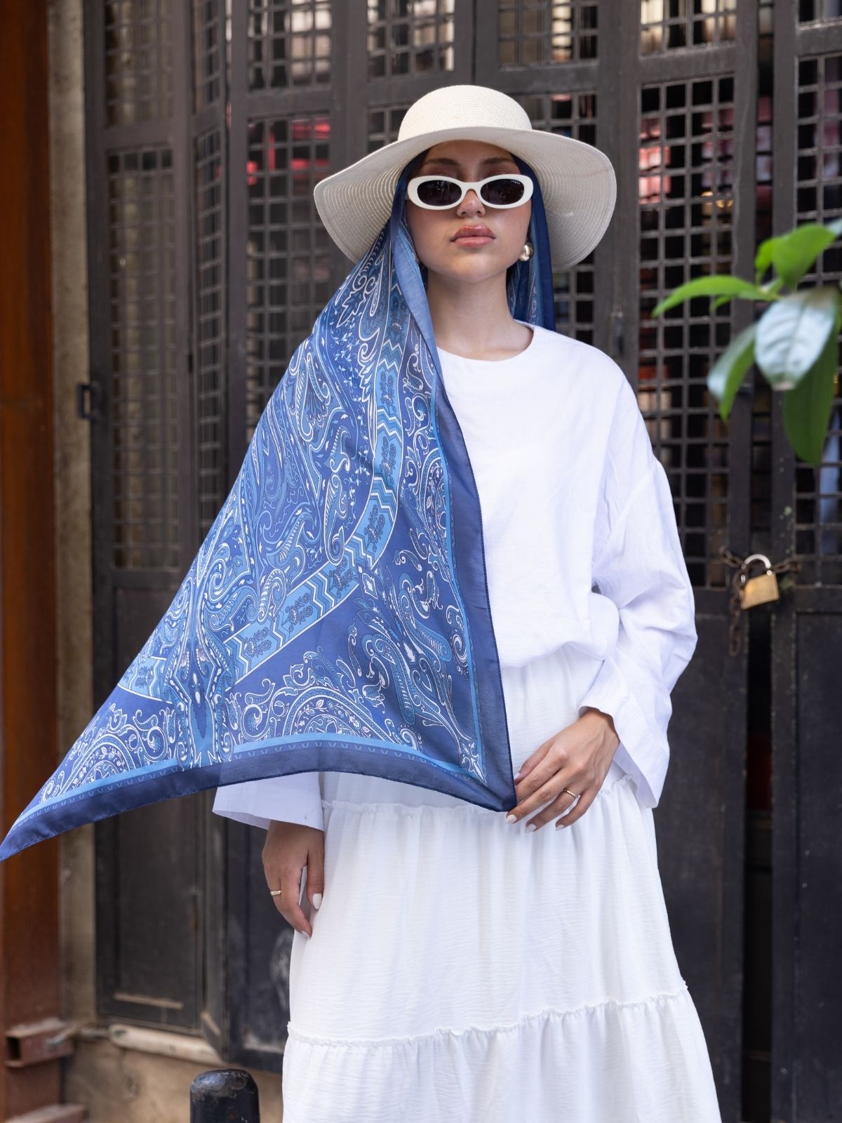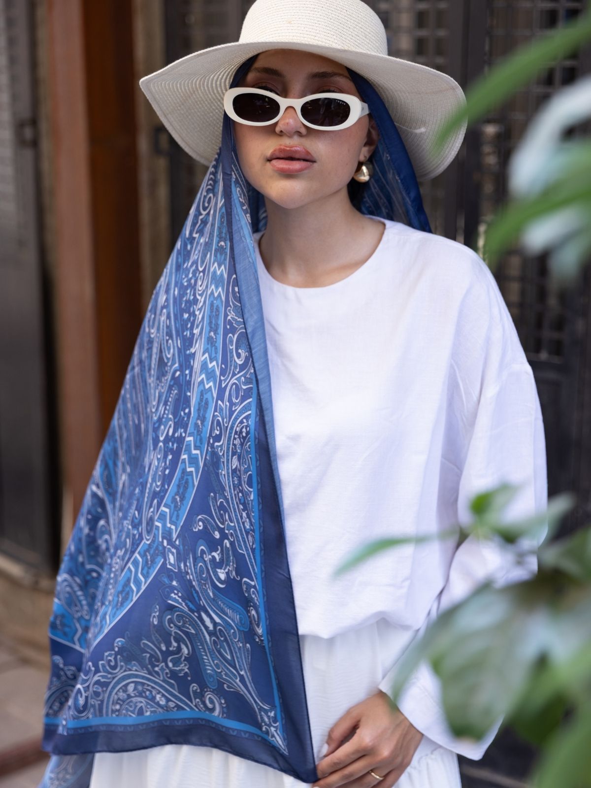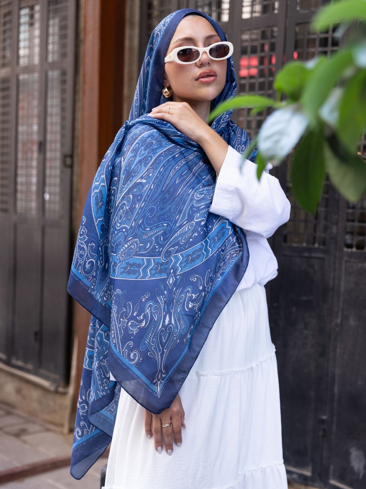Etro Pamuk İpek Şal 52340 -Mavi-lacivert – Touch İpek