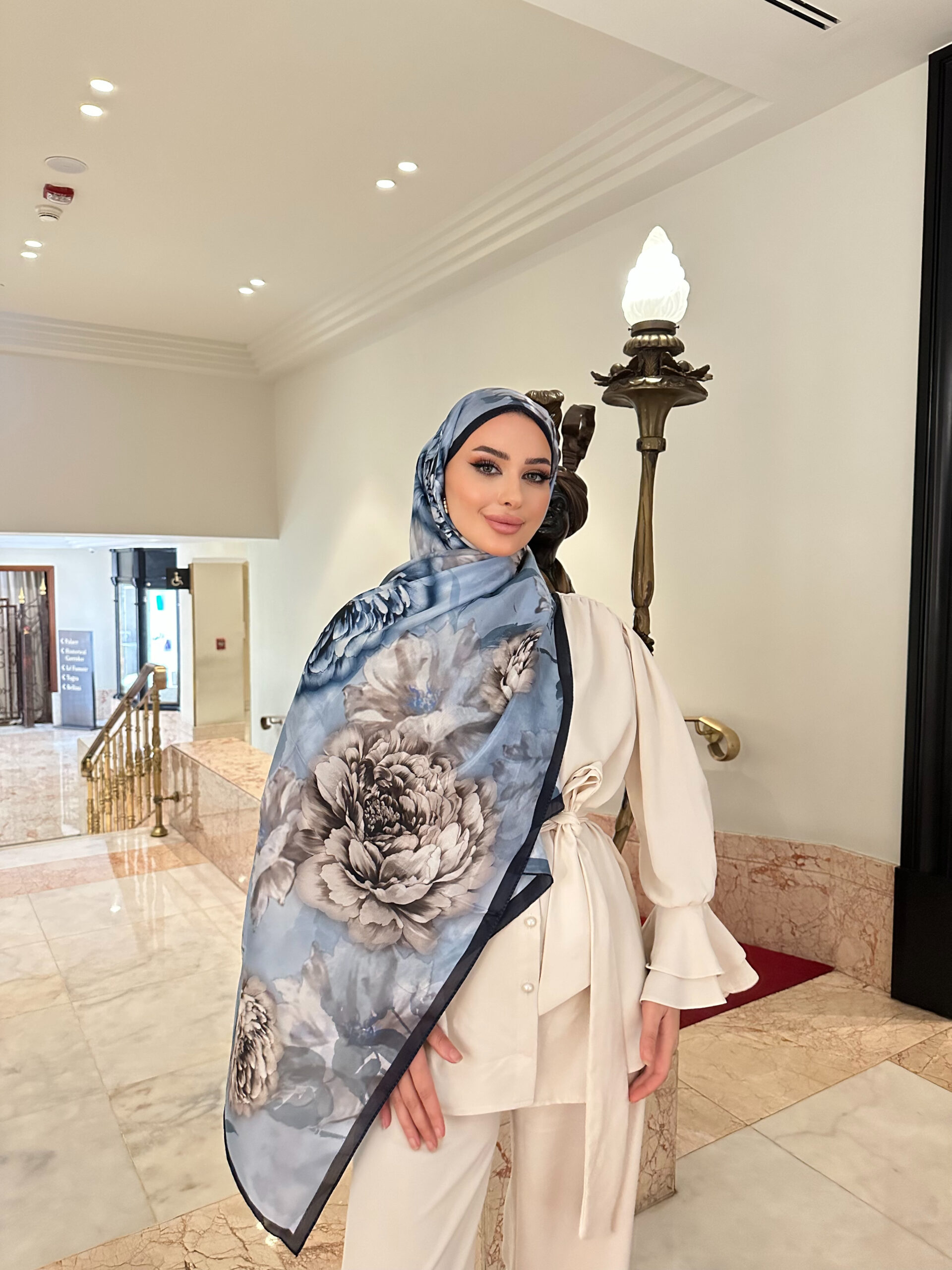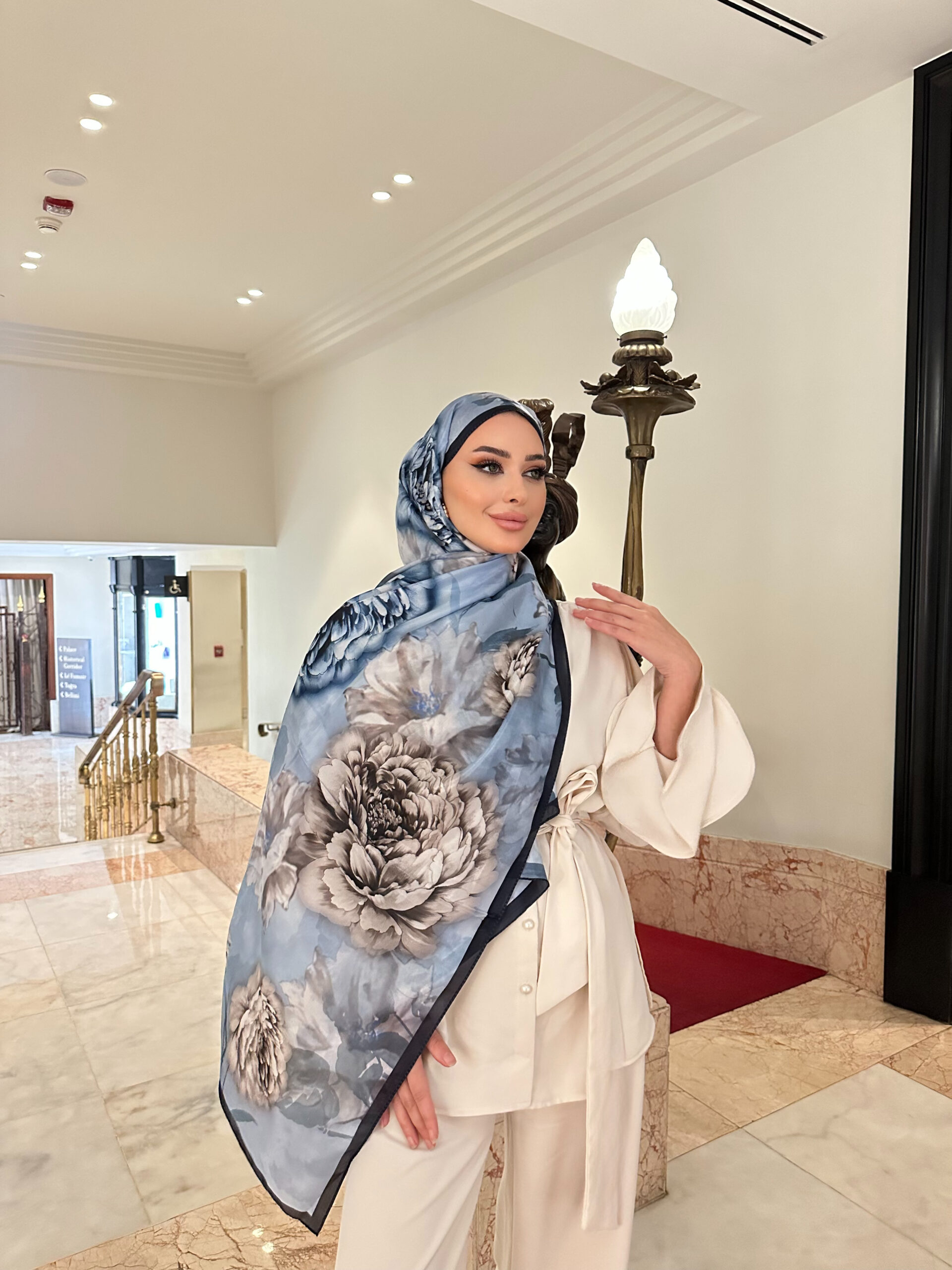 Flora Vual İpek Şal 10100 – Sis Mavisi