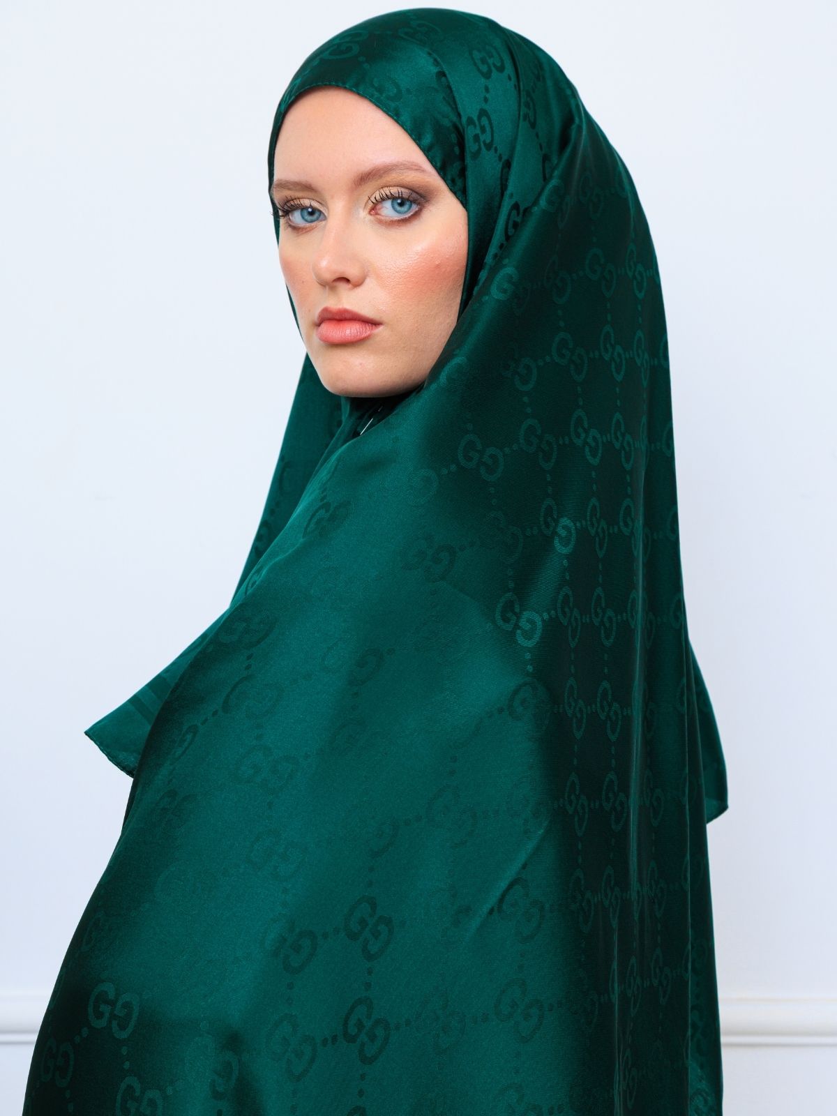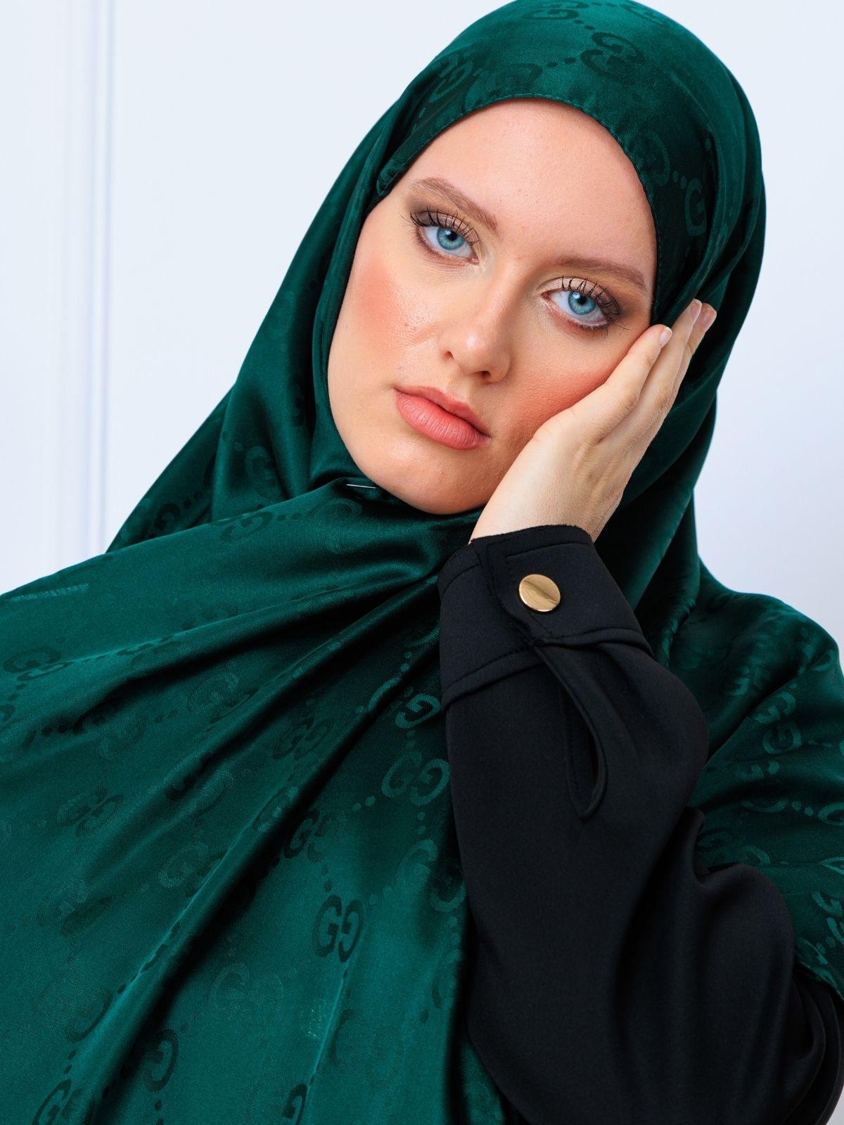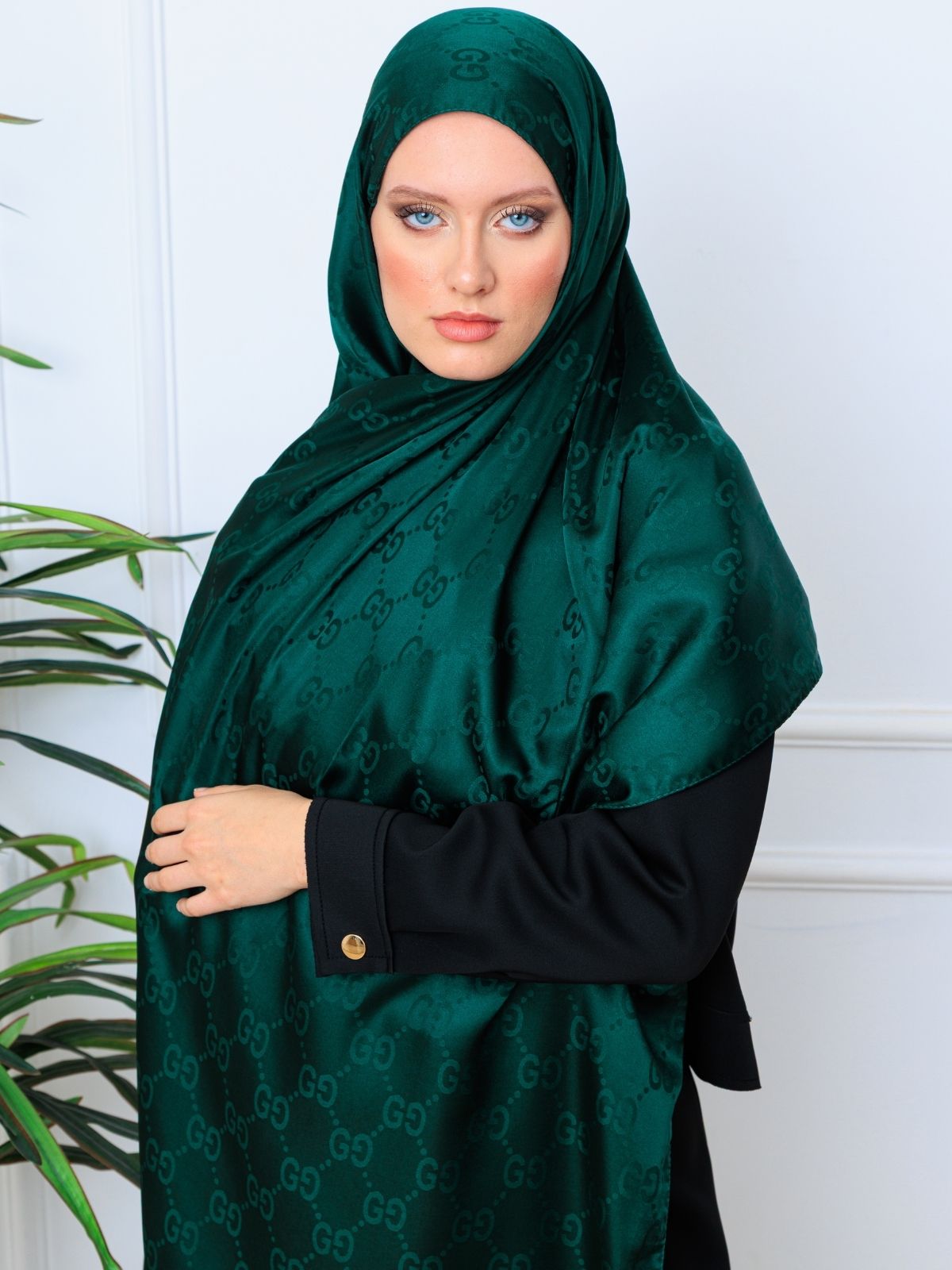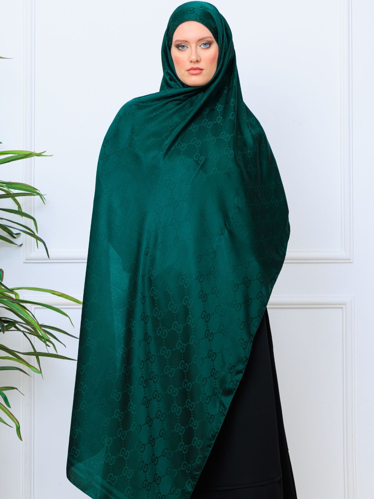 G Desen İthal Pamuk Jakar Şal – Zümrüt – Touch İpek