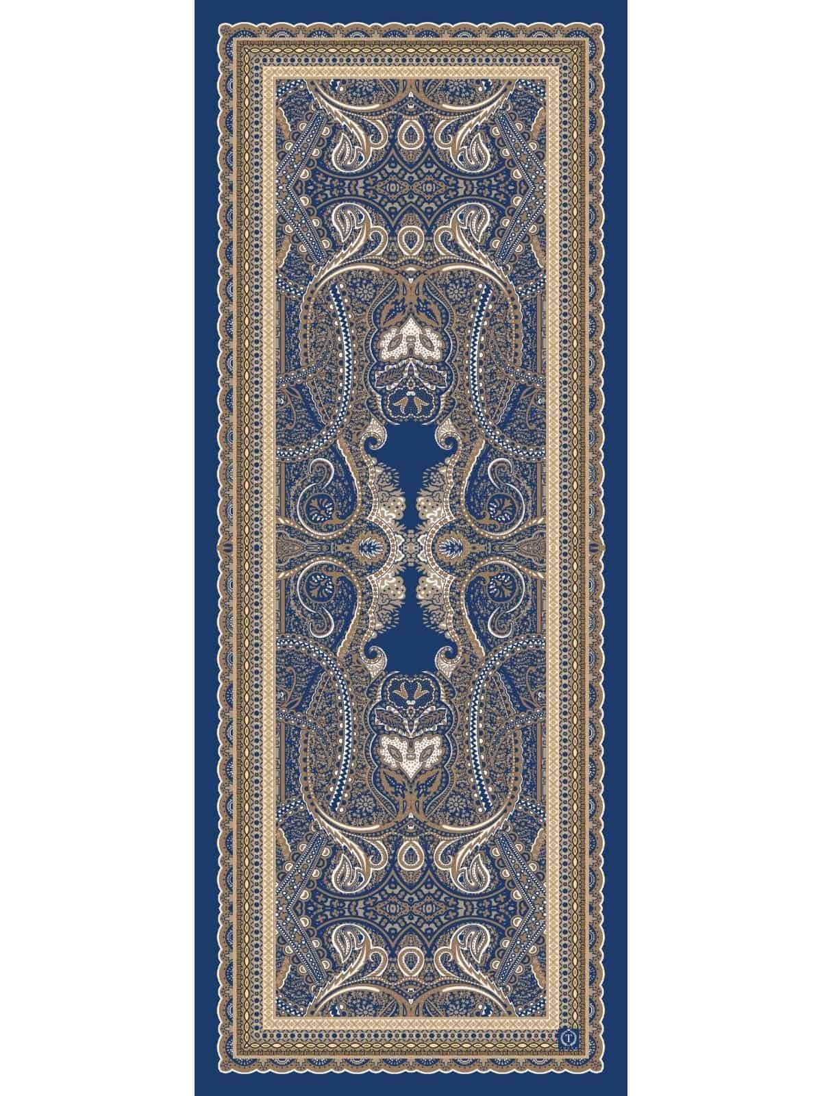 İndigo Roze Desen Pamuk İpek Şal