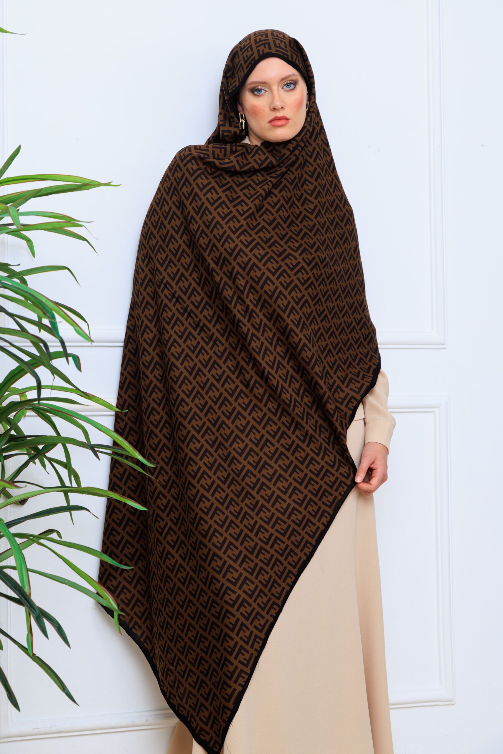 Yün İpek Çift Taraflı Marka Şal 87478 – Siyah Biyeli