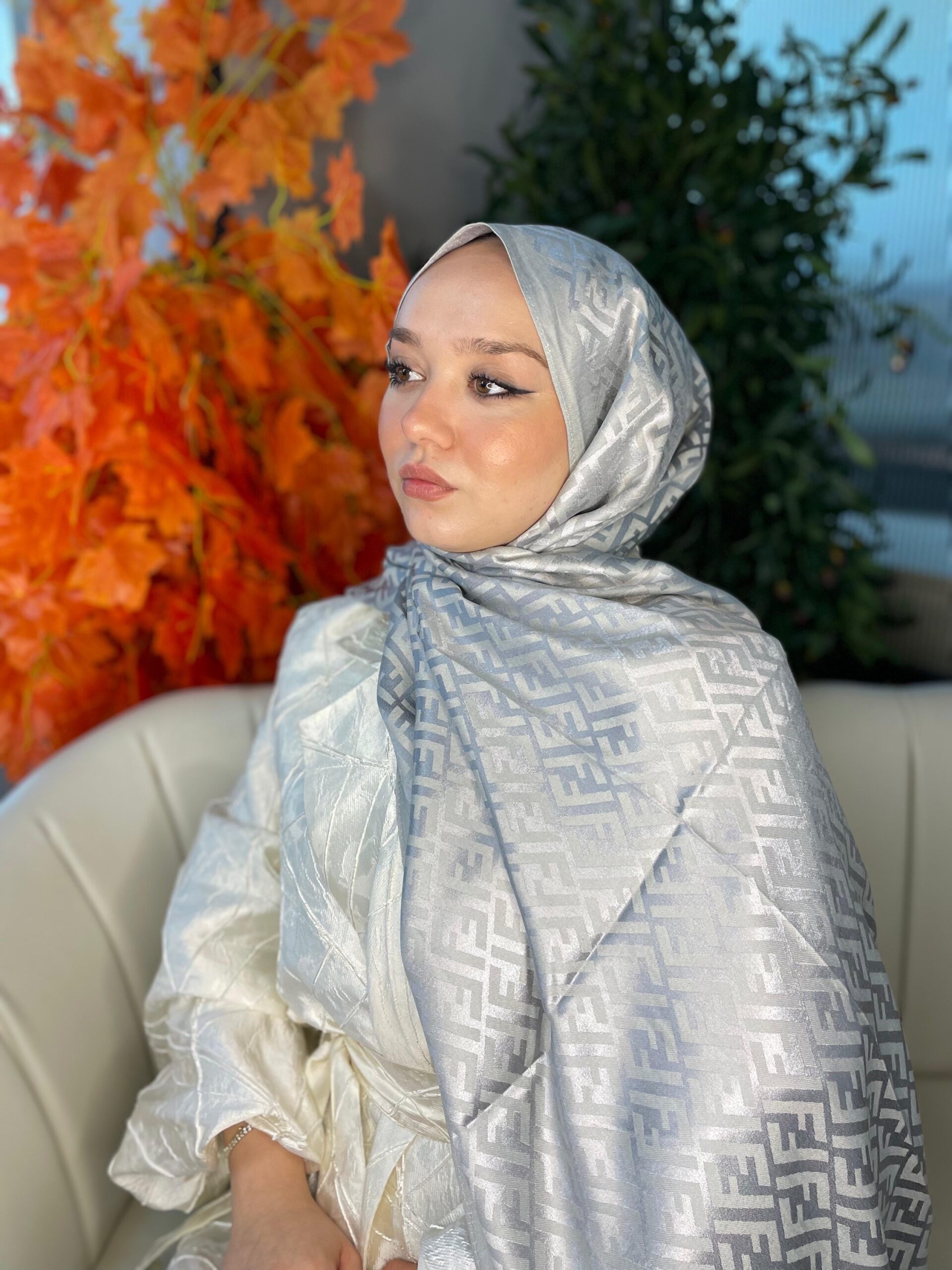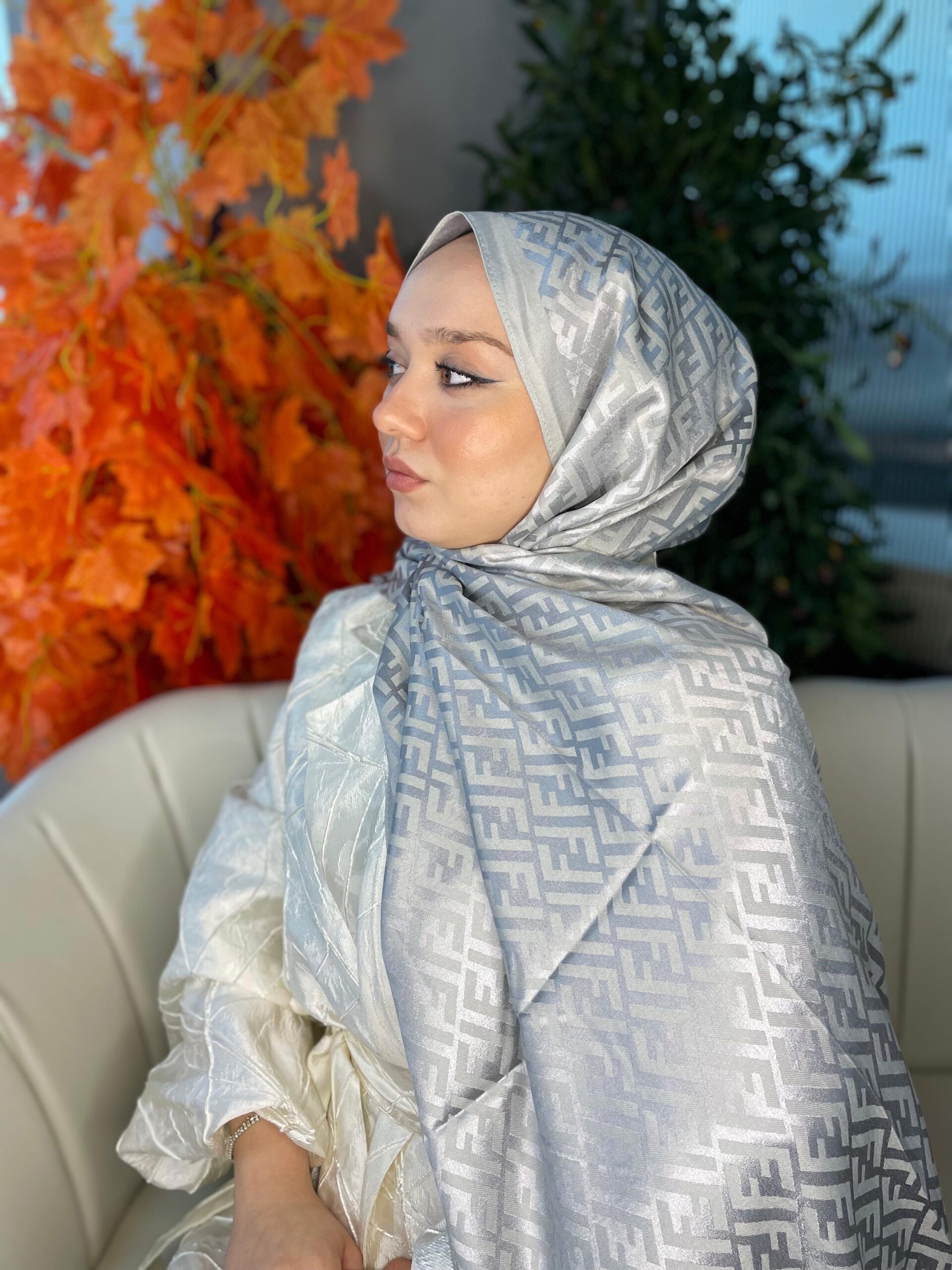 İthal Fendi Pamuk Yün İpek Şal 49101 – Gümüş