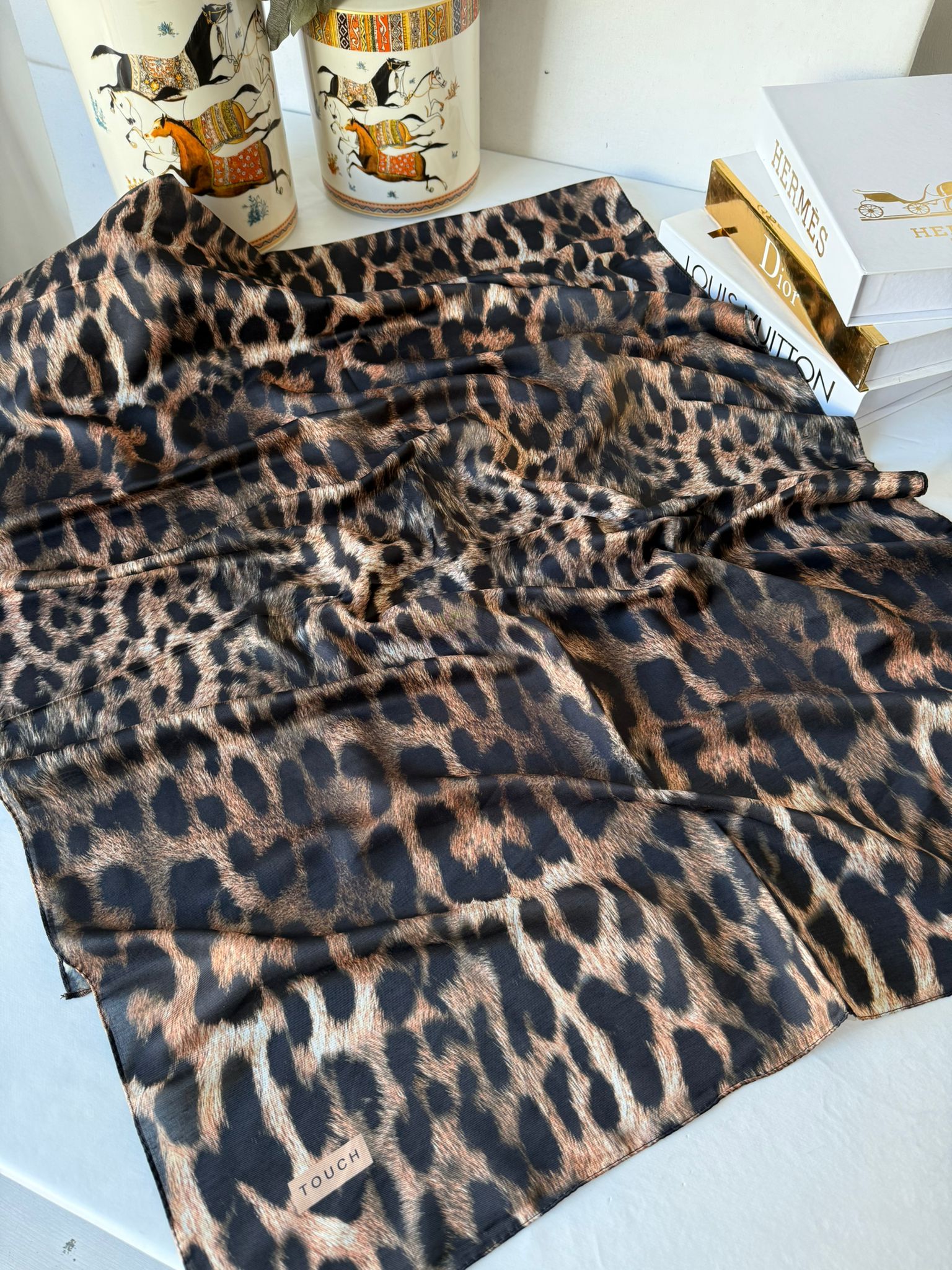 Kahve Leopar Desen Pamuk Soft Şal – Touch İpek