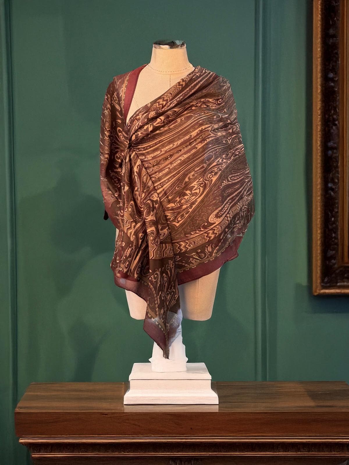 Kahve Sarmaşık Desen Pamuk Şal – Touch İpek