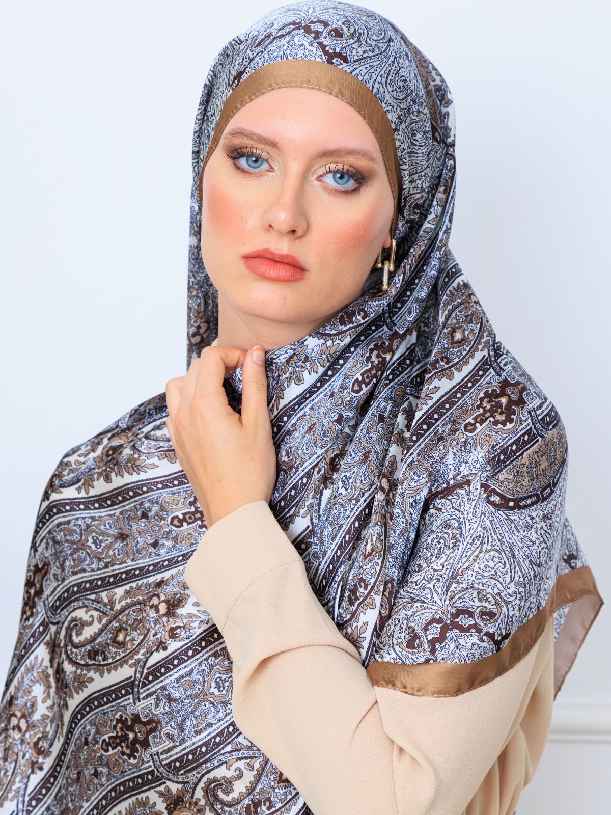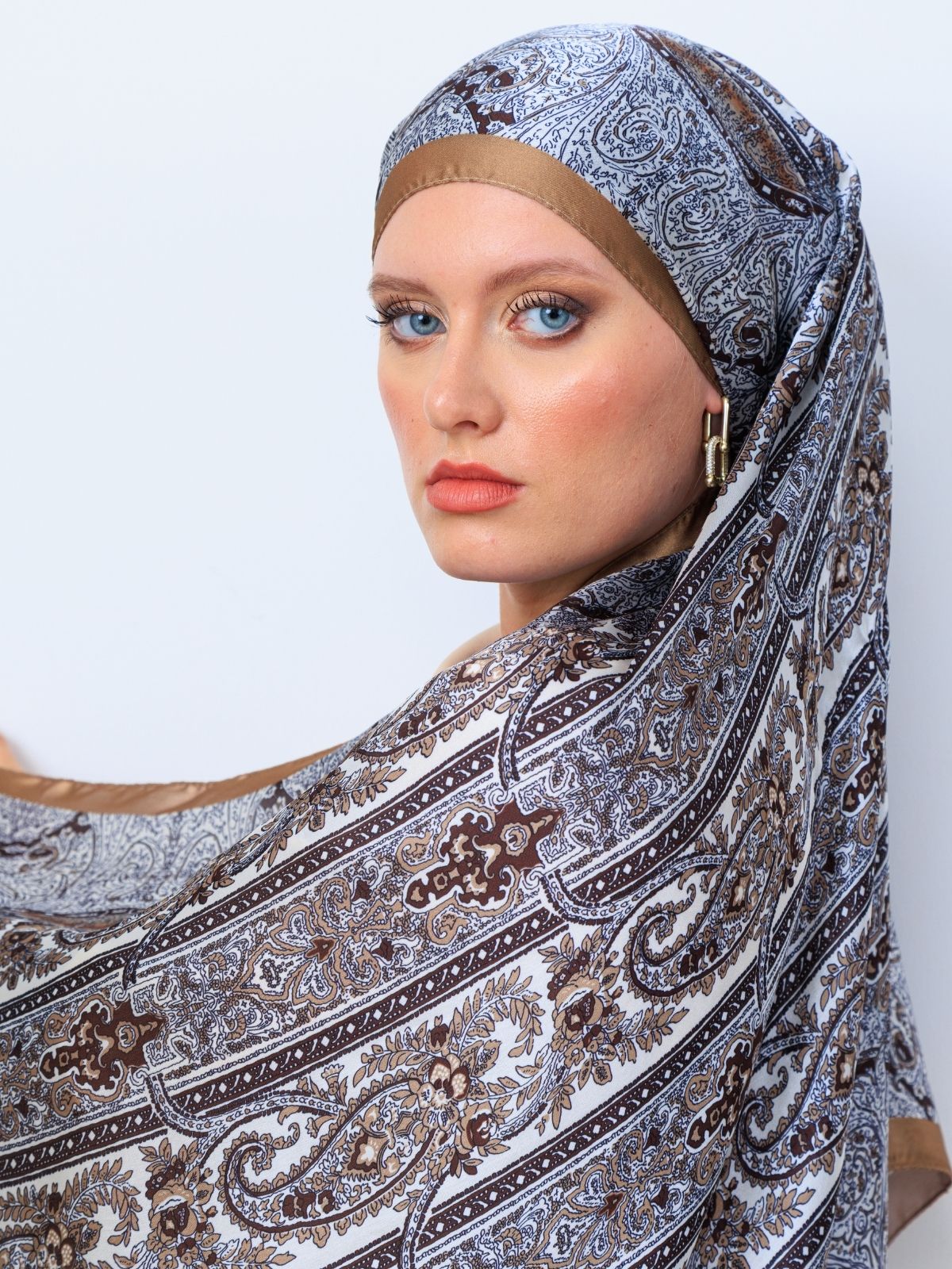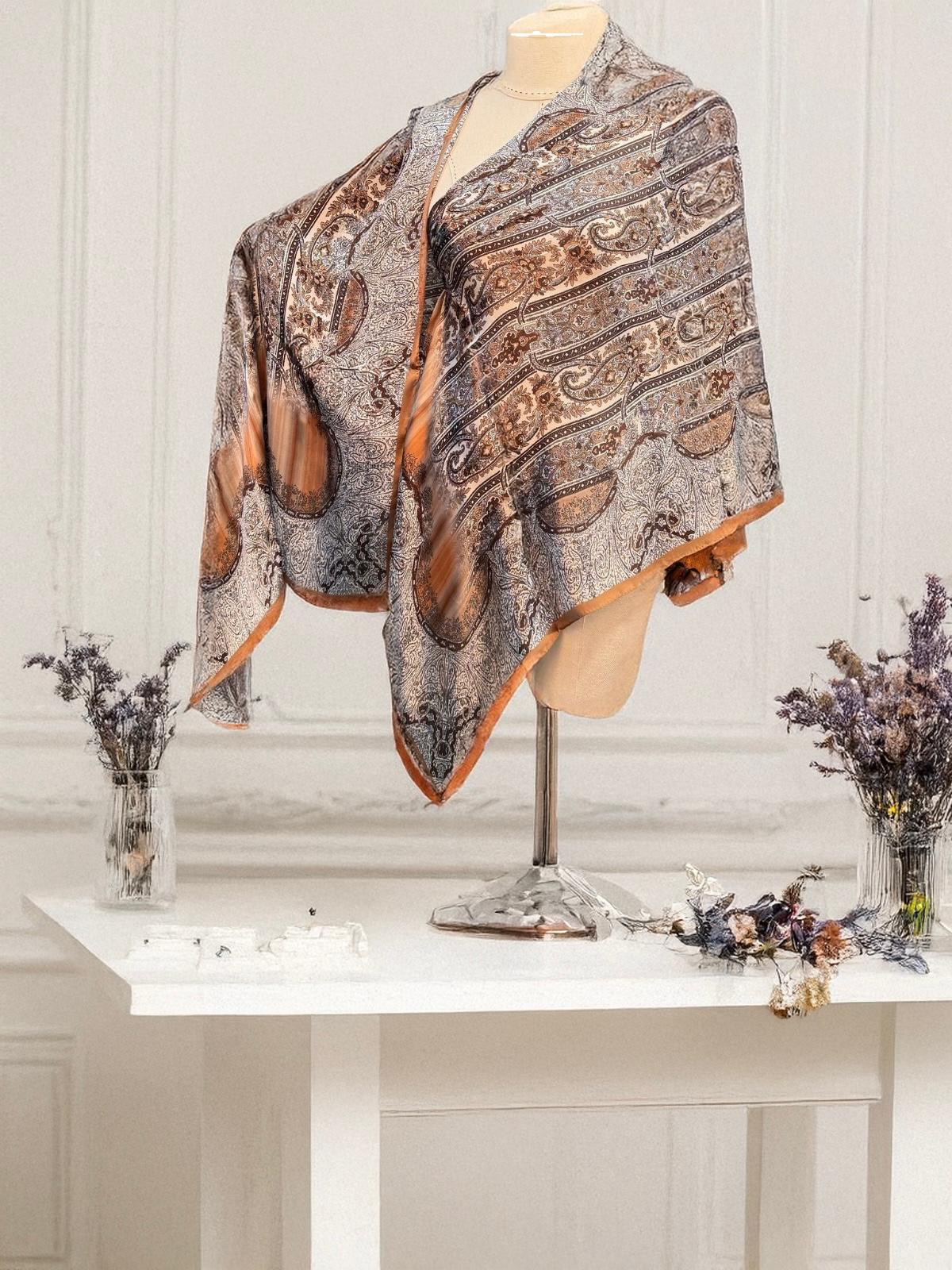Karamel Retro Vual İpek Şal - oxygenipek