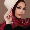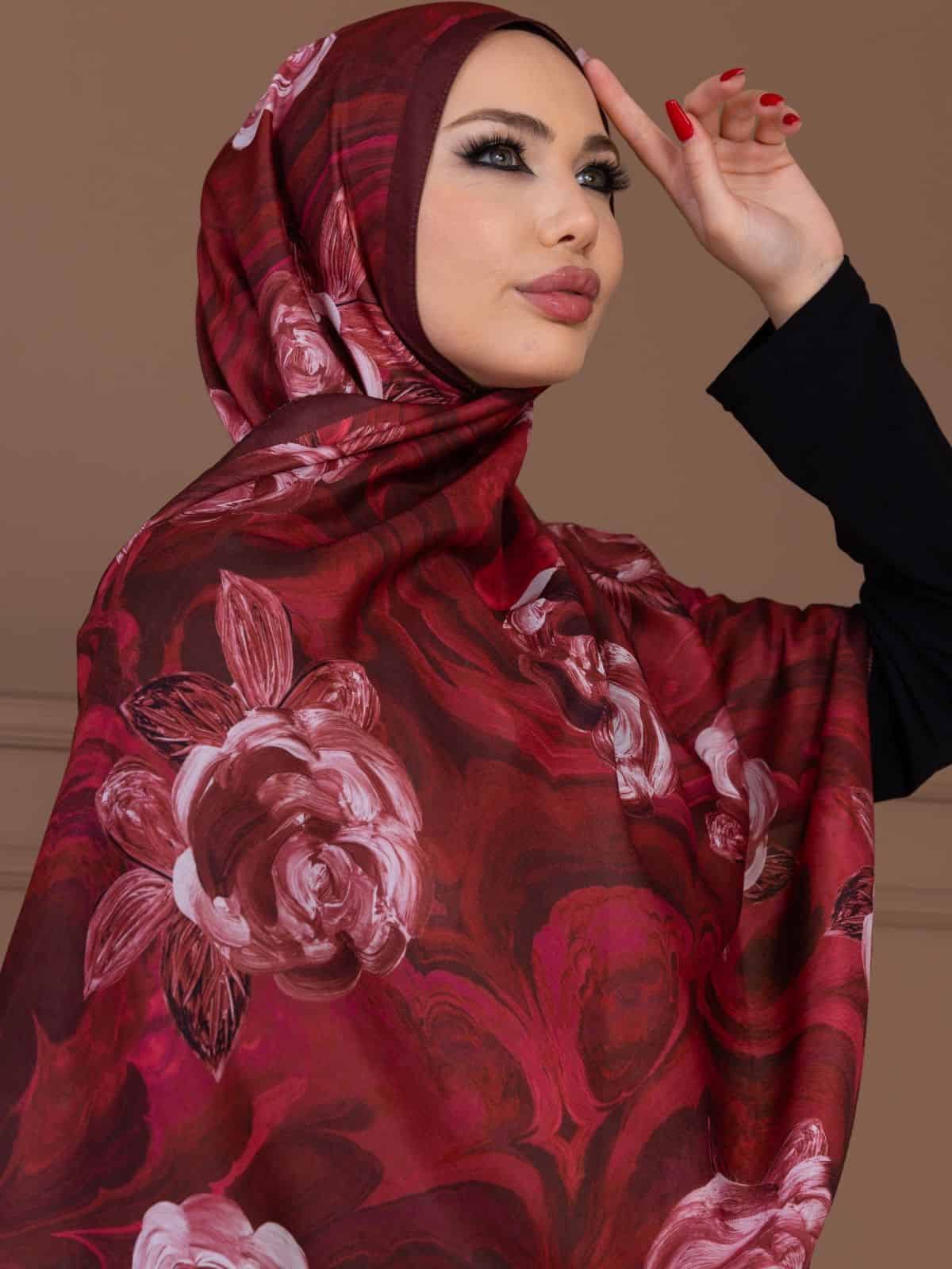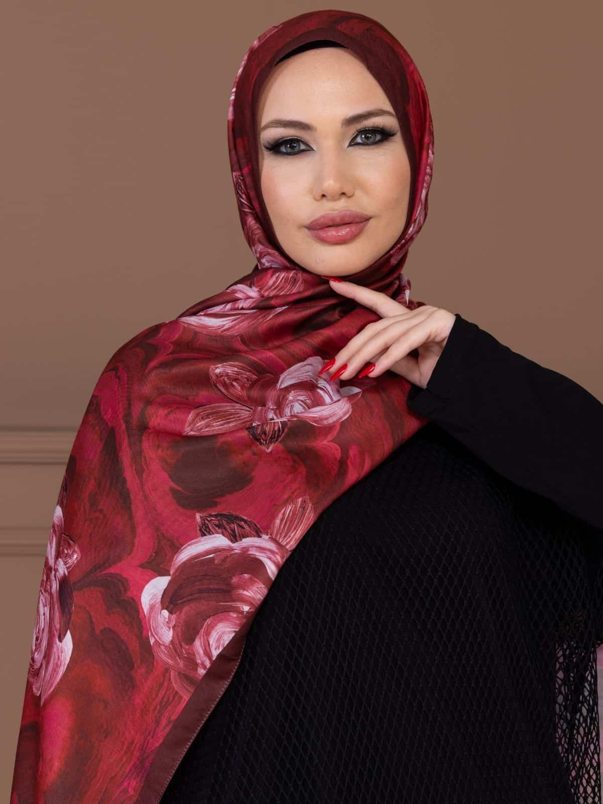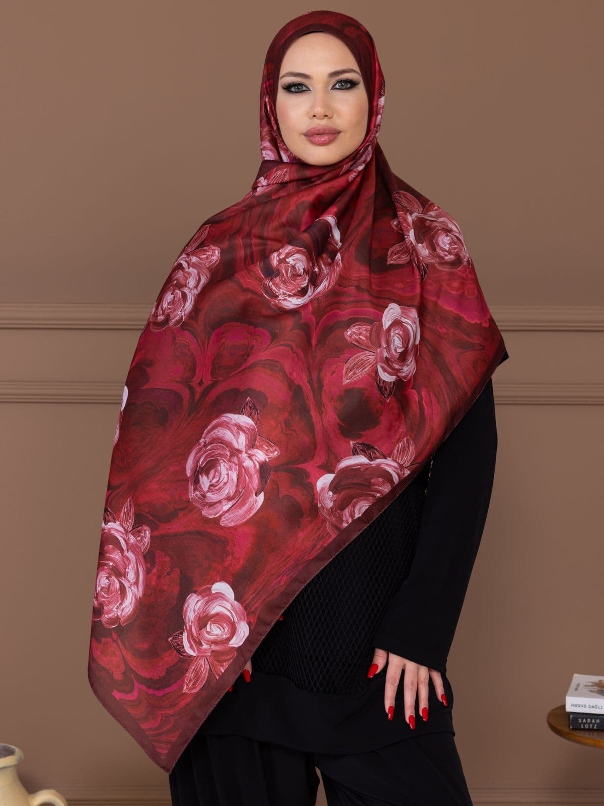 Kırmızı Çiçek Desen Pamuk Soft Şal - oxygenipek