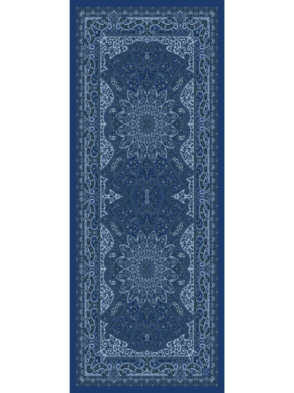 Lacivert Zambak Desenli Yün İpek Şal – Touch İpek