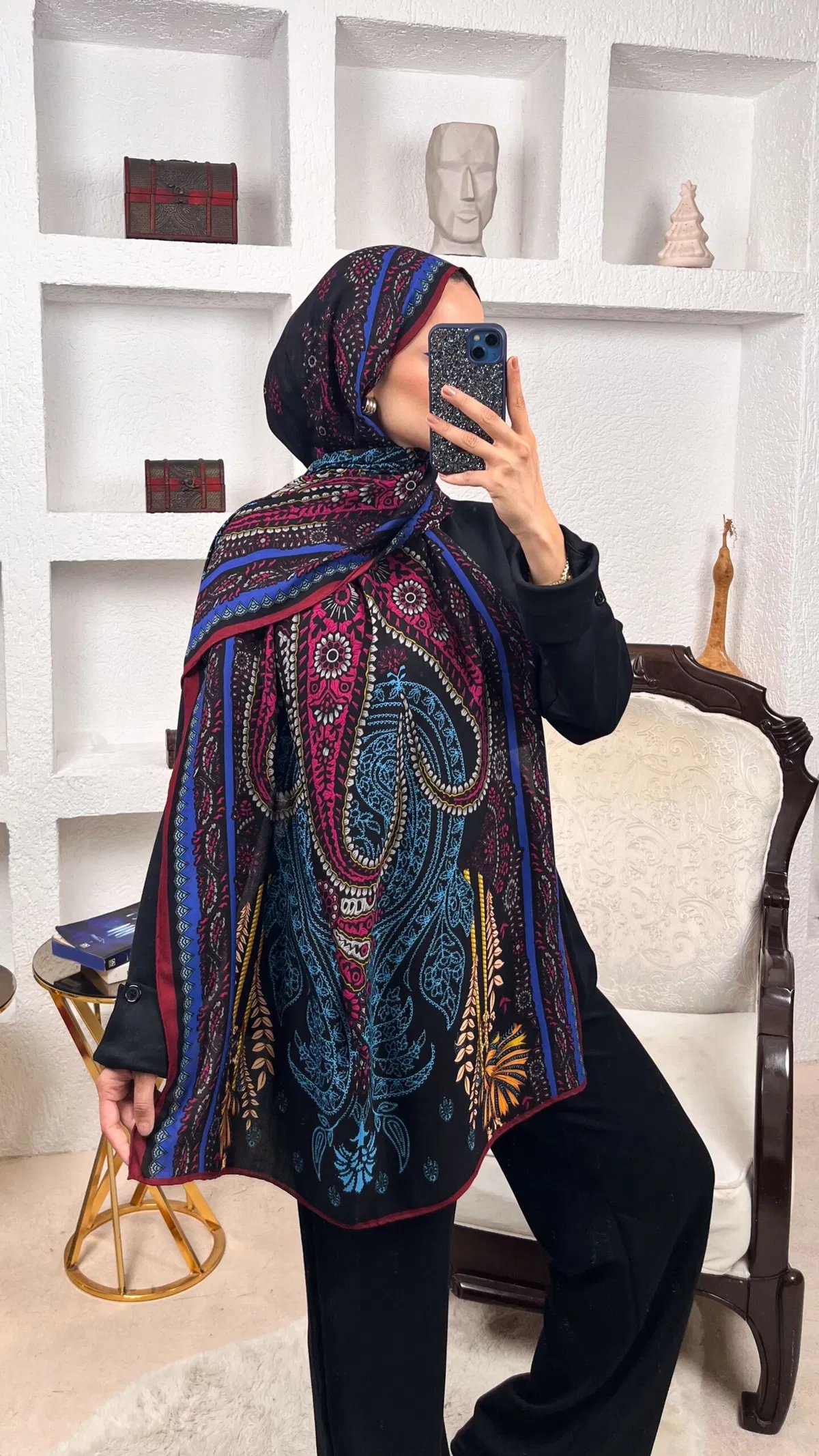 Buta Yün İpek Şal, 80×200 cm boyutlarında, %30 yün %70 ipek karışımıyla üretilmiş lüks bir şaldır. Göz alıcı desenleriyle dikkat çeken bu şal, stilinize doğanın zarafetini katmak isteyenler için ideal bir seçimdir. Yumuşak ve hafif dokusu sayesinde konforlu bir kullanım sunarken, şık ve sofistike görünümüyle her türlü kombini tamamlar. Alışılmadık detaylarıyla zenginleştirilen bu şal, günlük hayatta veya özel davetlerde tarzınıza fark katmak ve kendinizi özel hissetmek için mükemmel bir tercihtir.