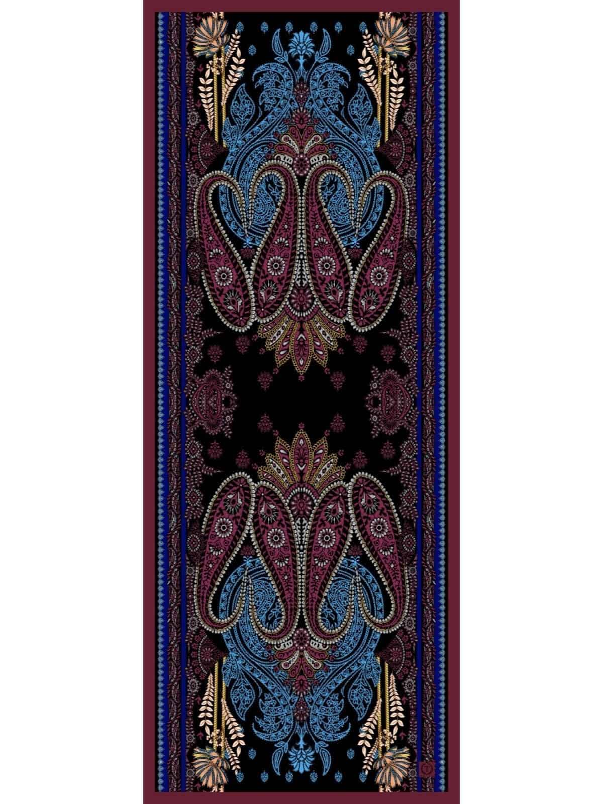 Magenta Buta Desen Yün İpek Şal – Touch İpek