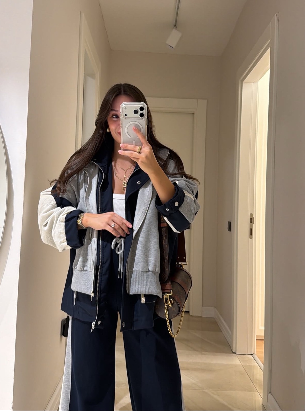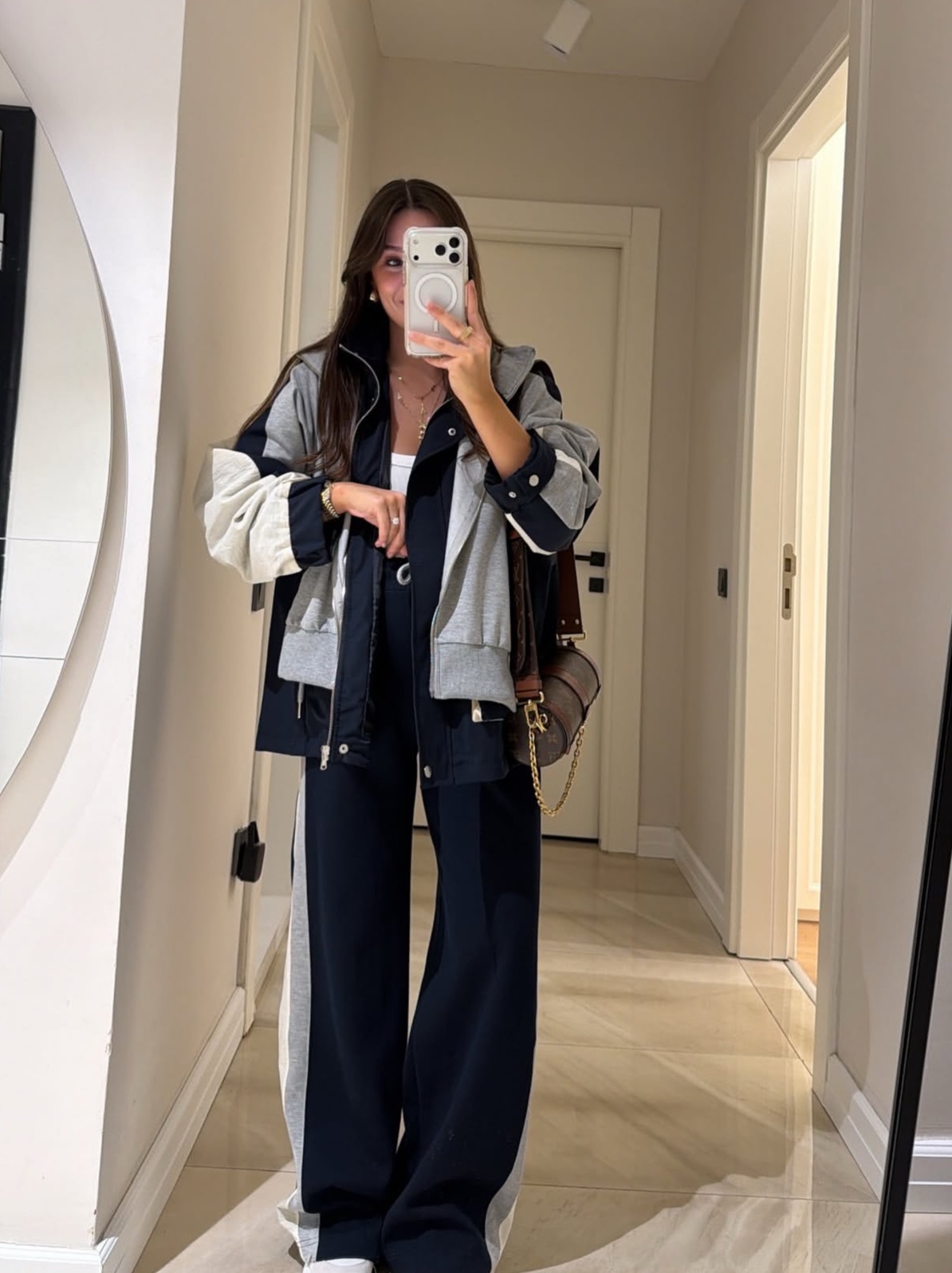 Massimo Kapüşonlu Garnili Takım – Lacivert-Gri