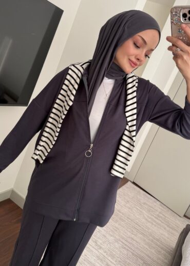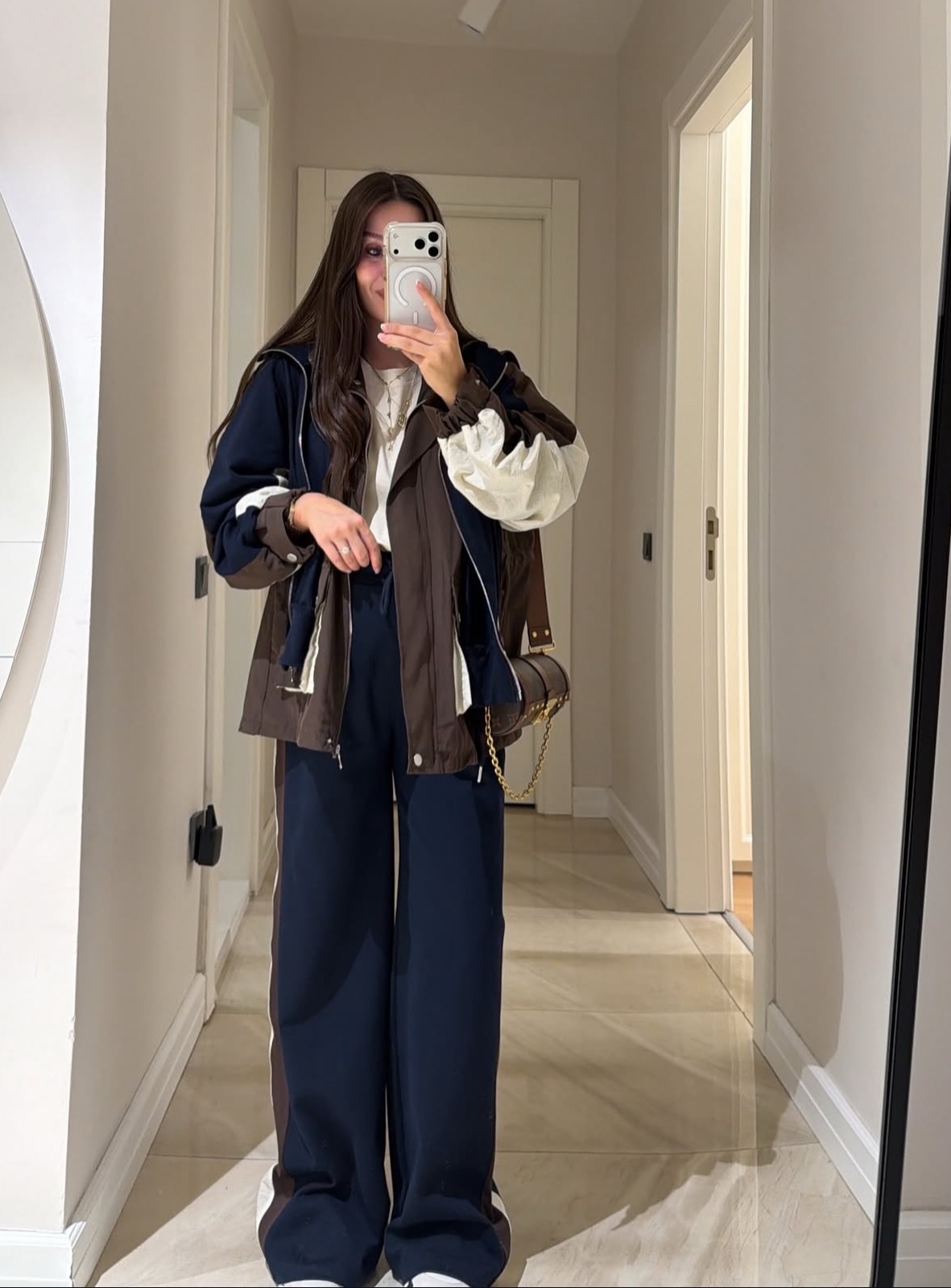 Massimo Kapüşonlu Garnili Takım – Lacivert-Kahve