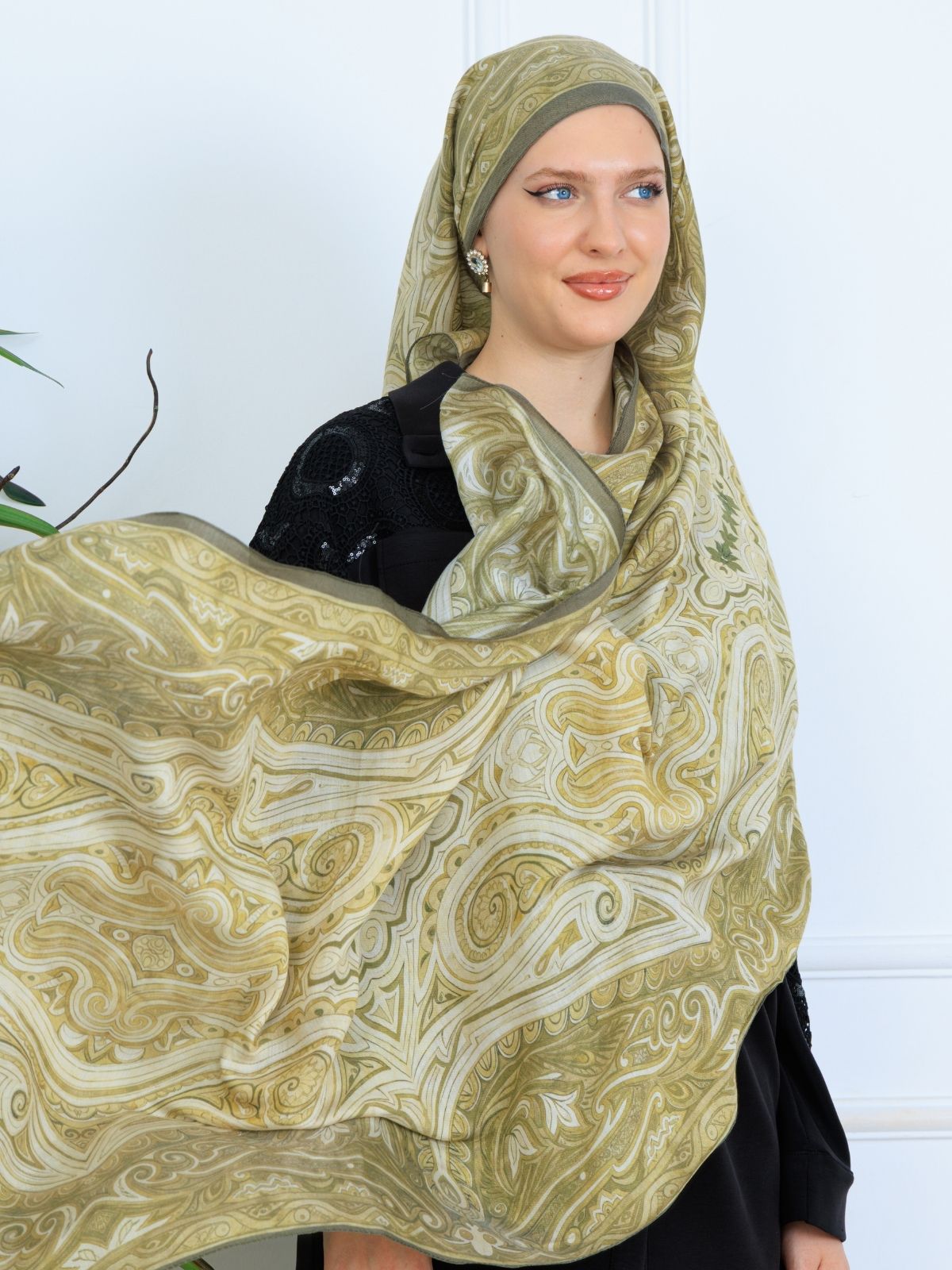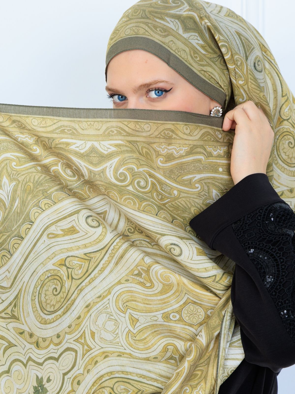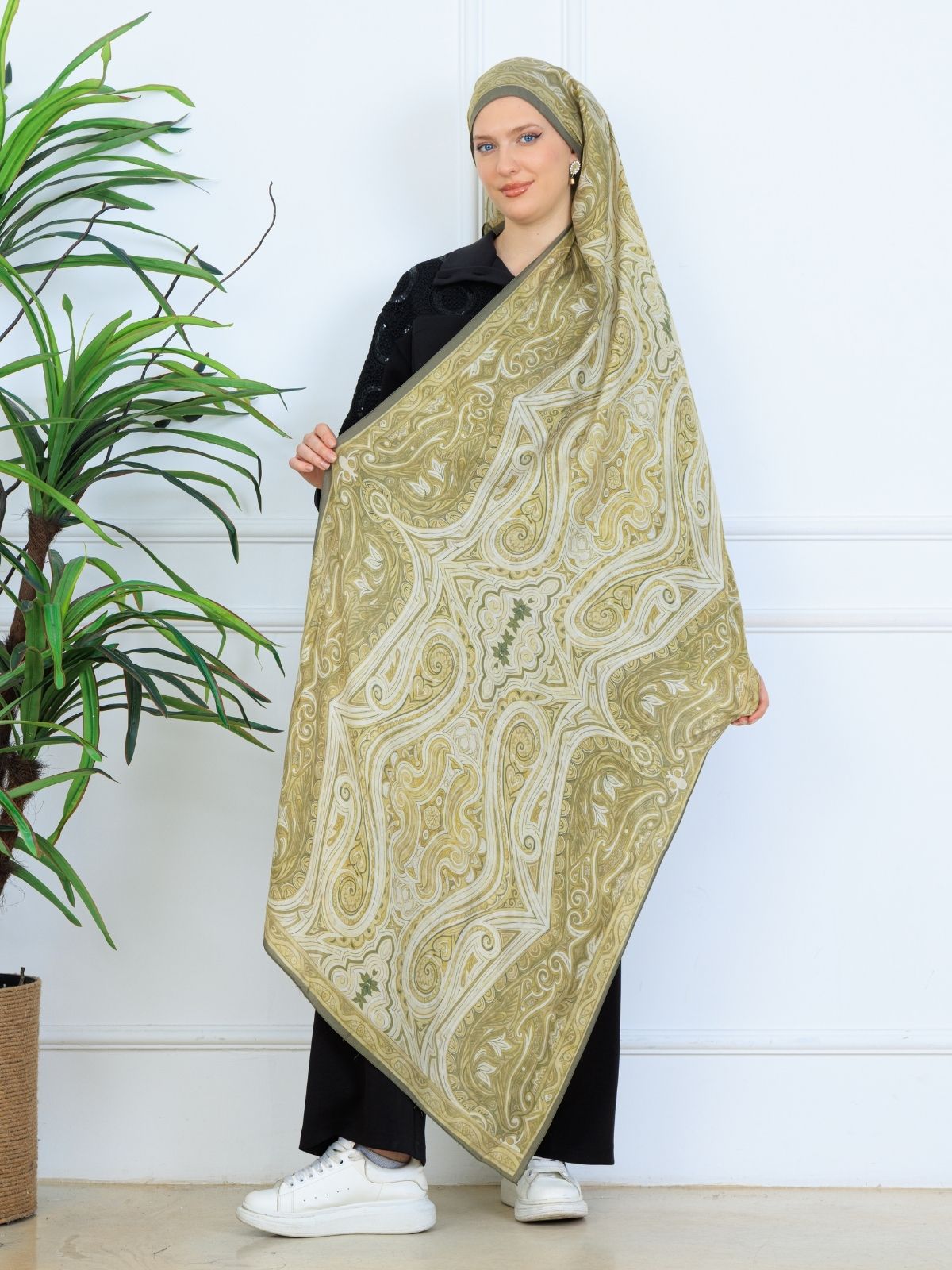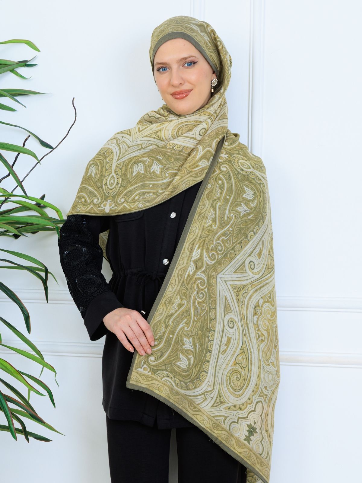 Mirşah Desen Şal 469-021 – V-6 – Yağ Yeşili – Touch İpek