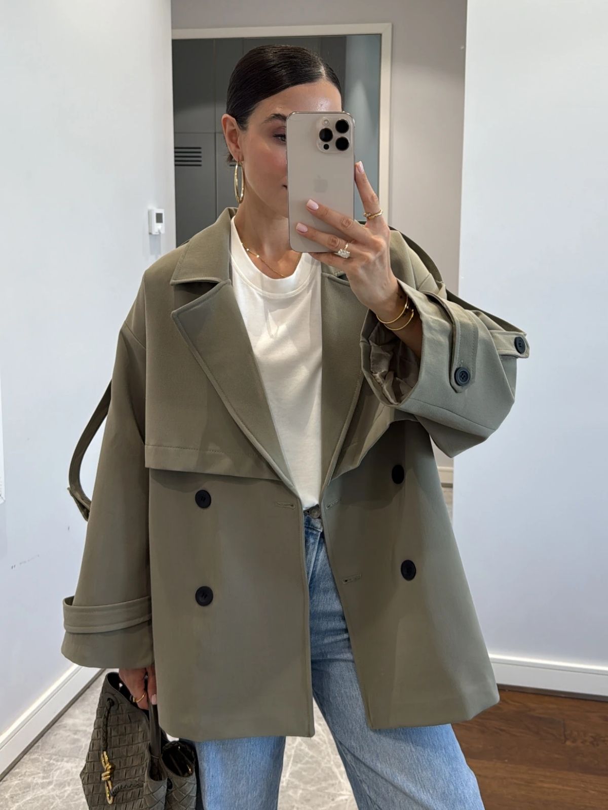 Oversize Omuz Detay Trençkot DŞ100235 – Haki – Touch İpek