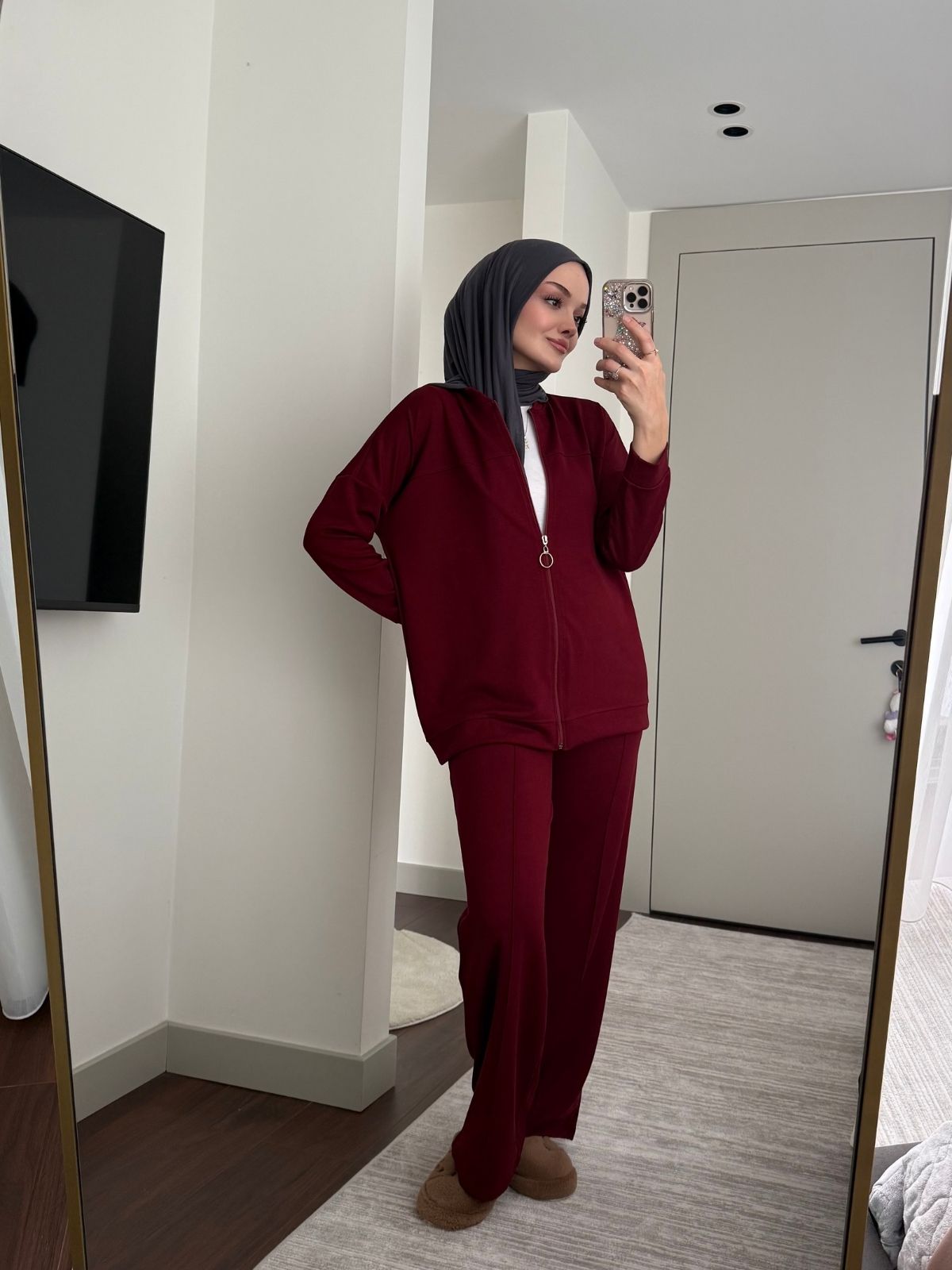 Oysho Fermuarlı Basic İkili Takım BÜYÜK BEDEN TK2962 – Bordo – Touch İpek
