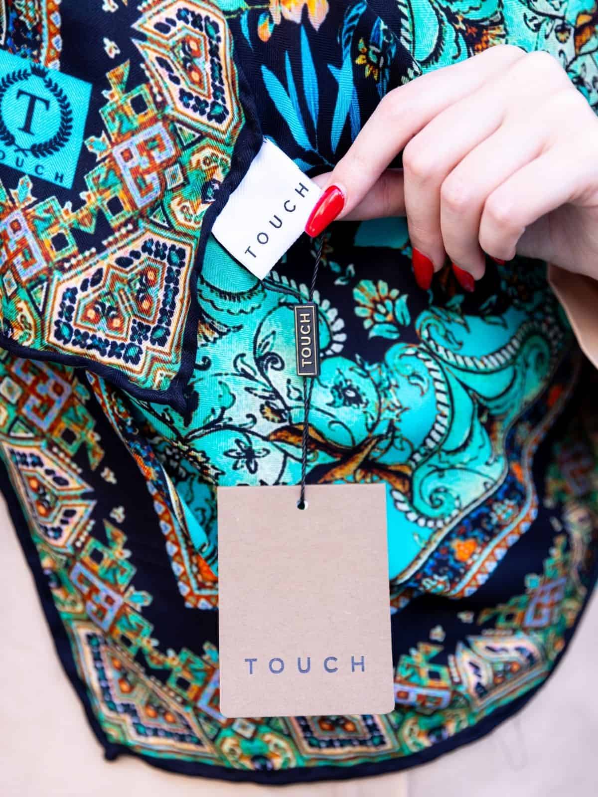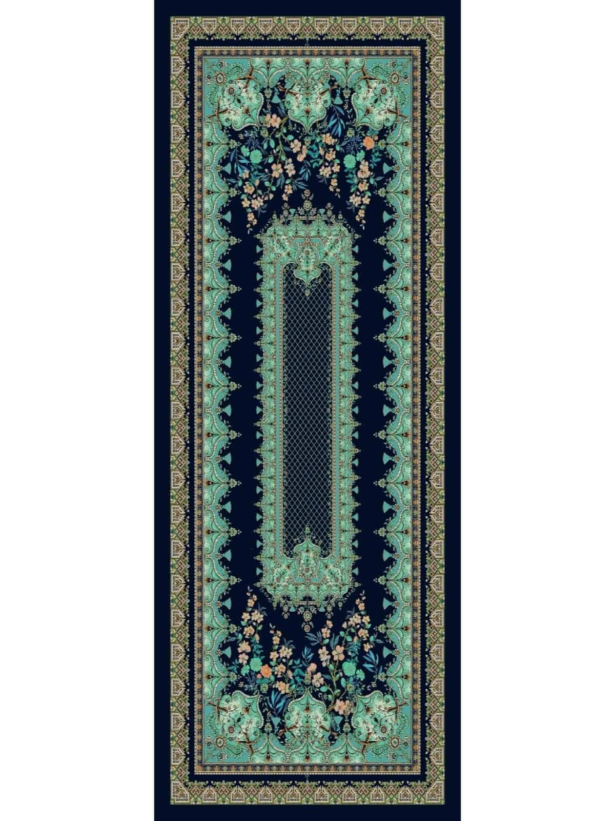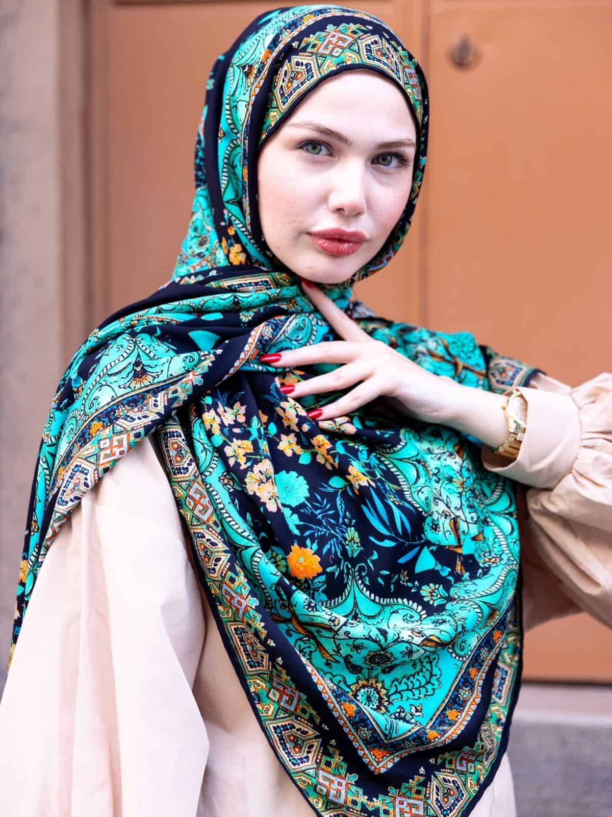 Petrol Safir Desenli Yün İpek Şal – Touch İpek