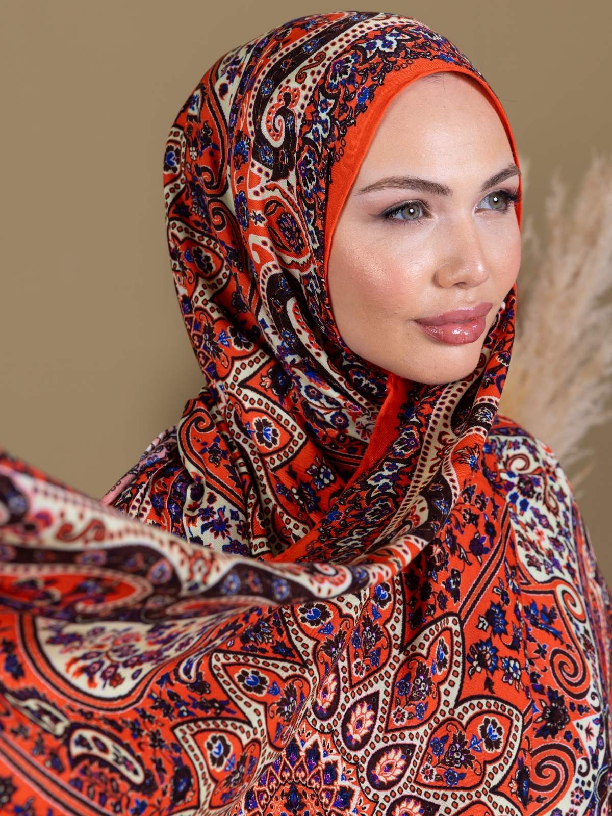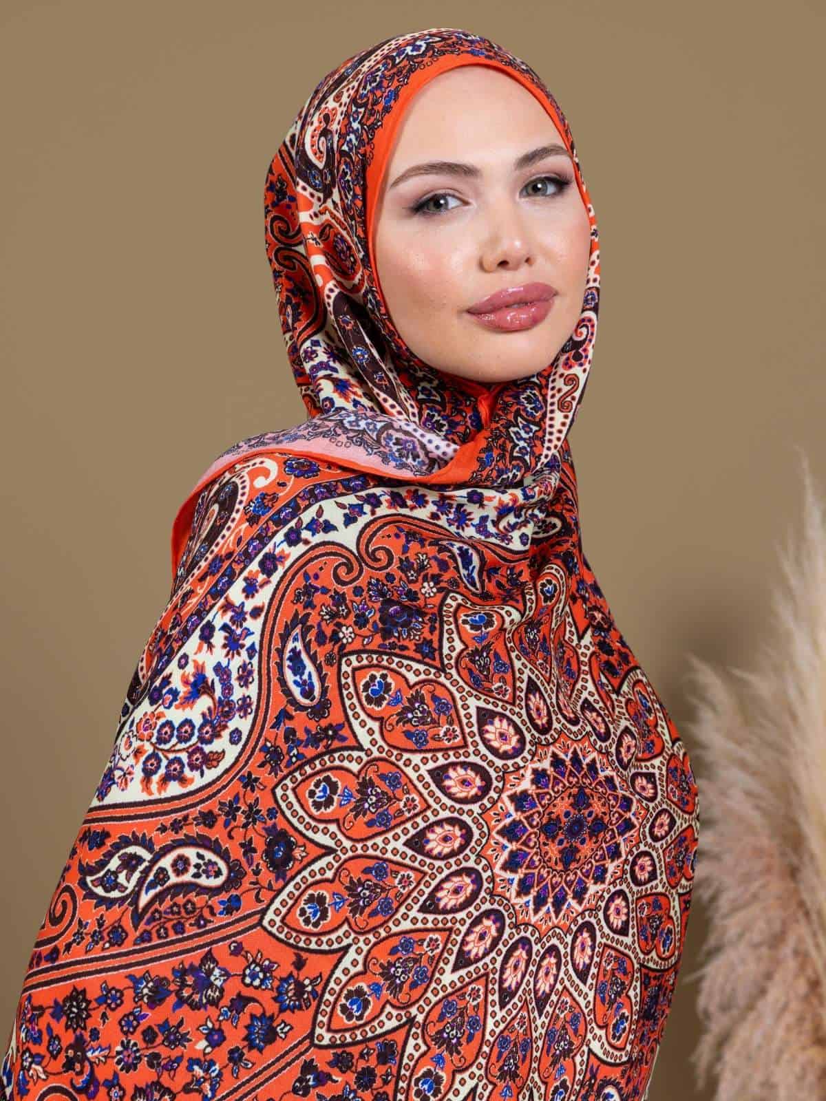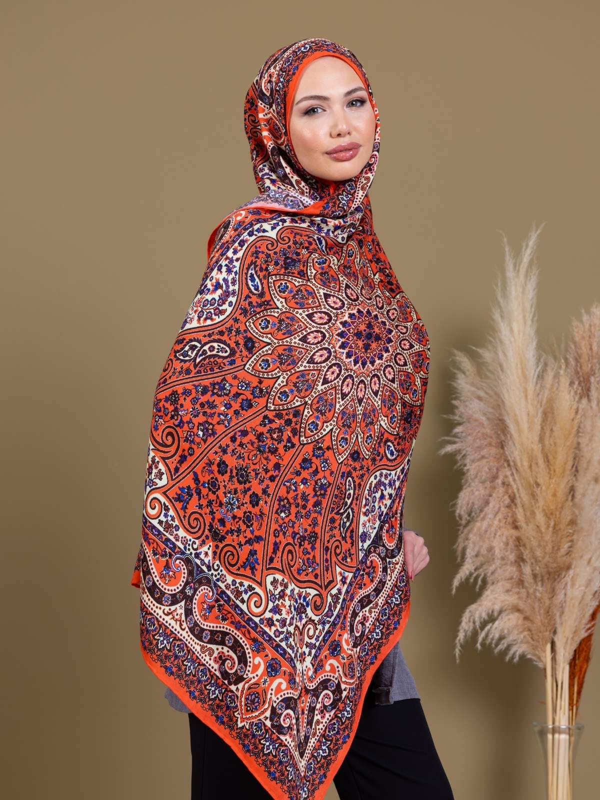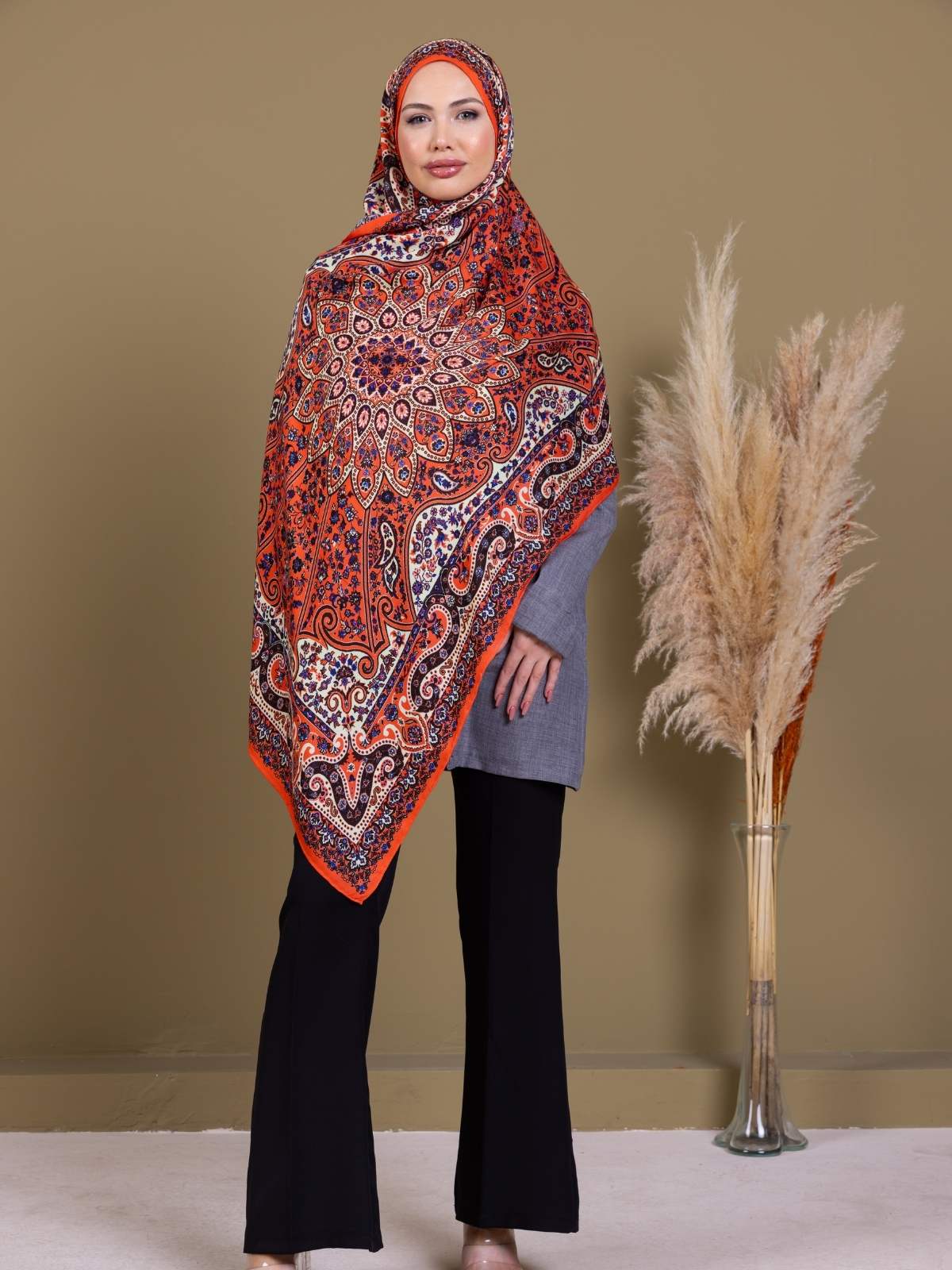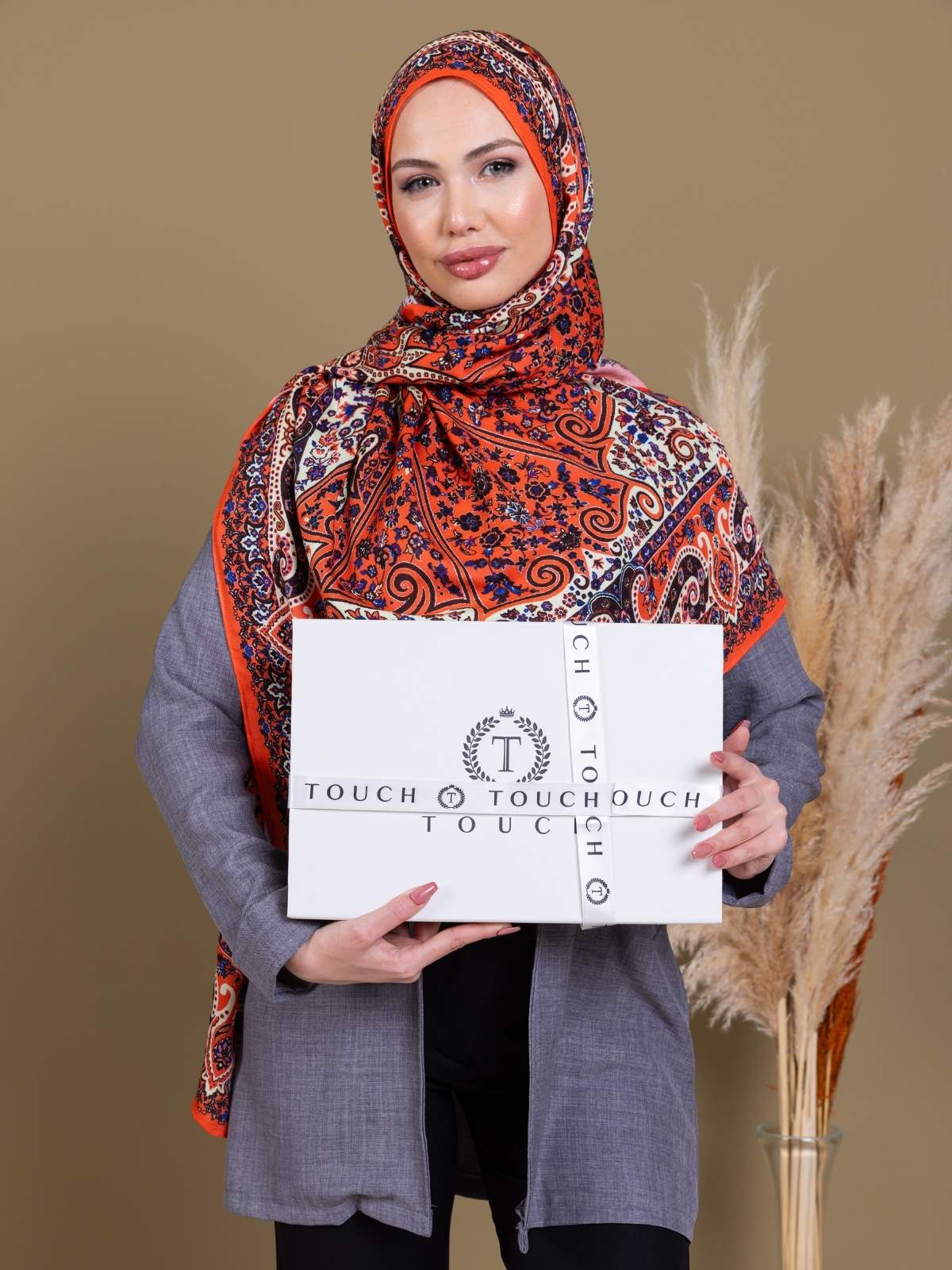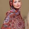 Pudra Zambak Desenli Yün İpek Şal – Touch İpek