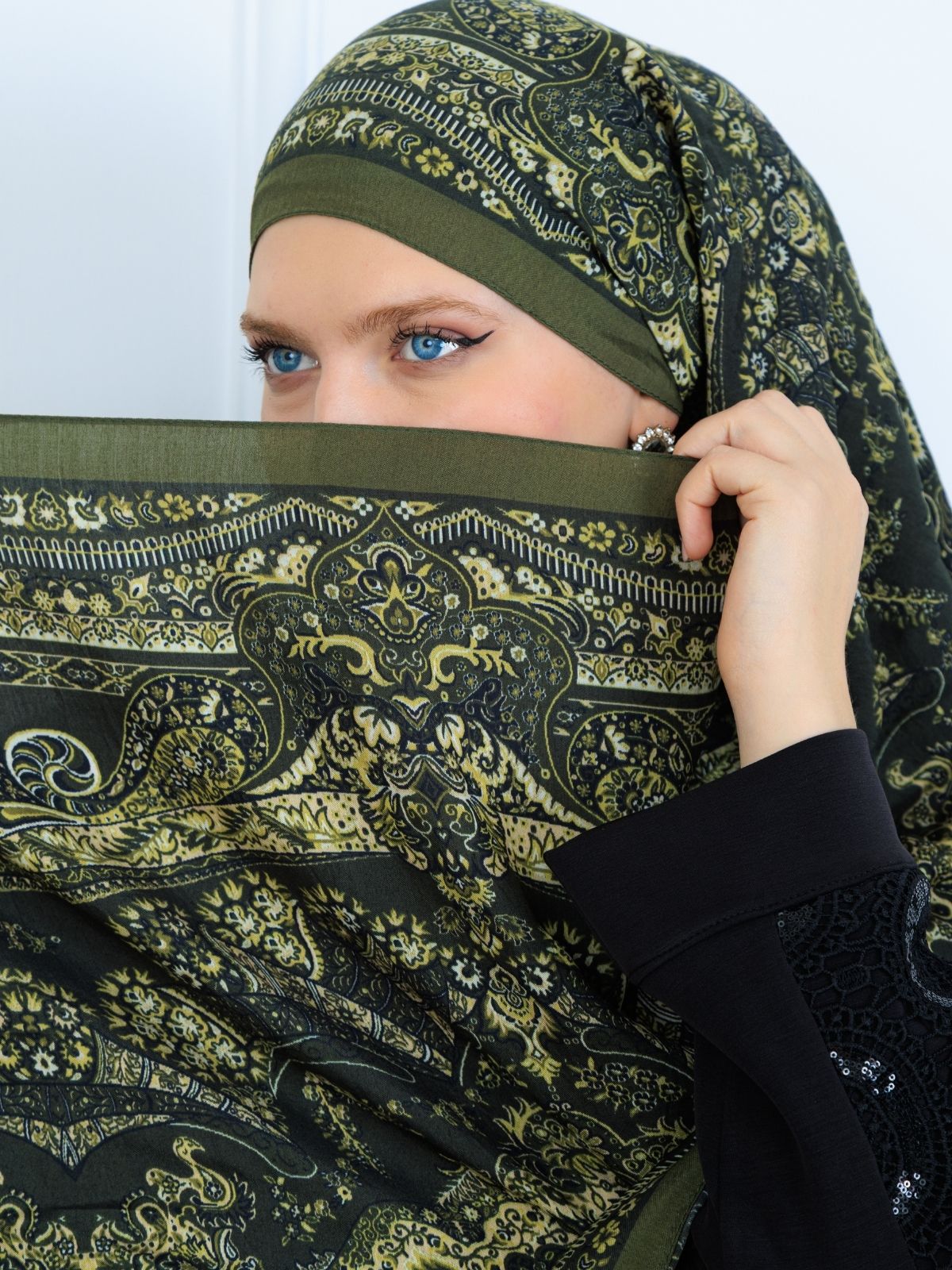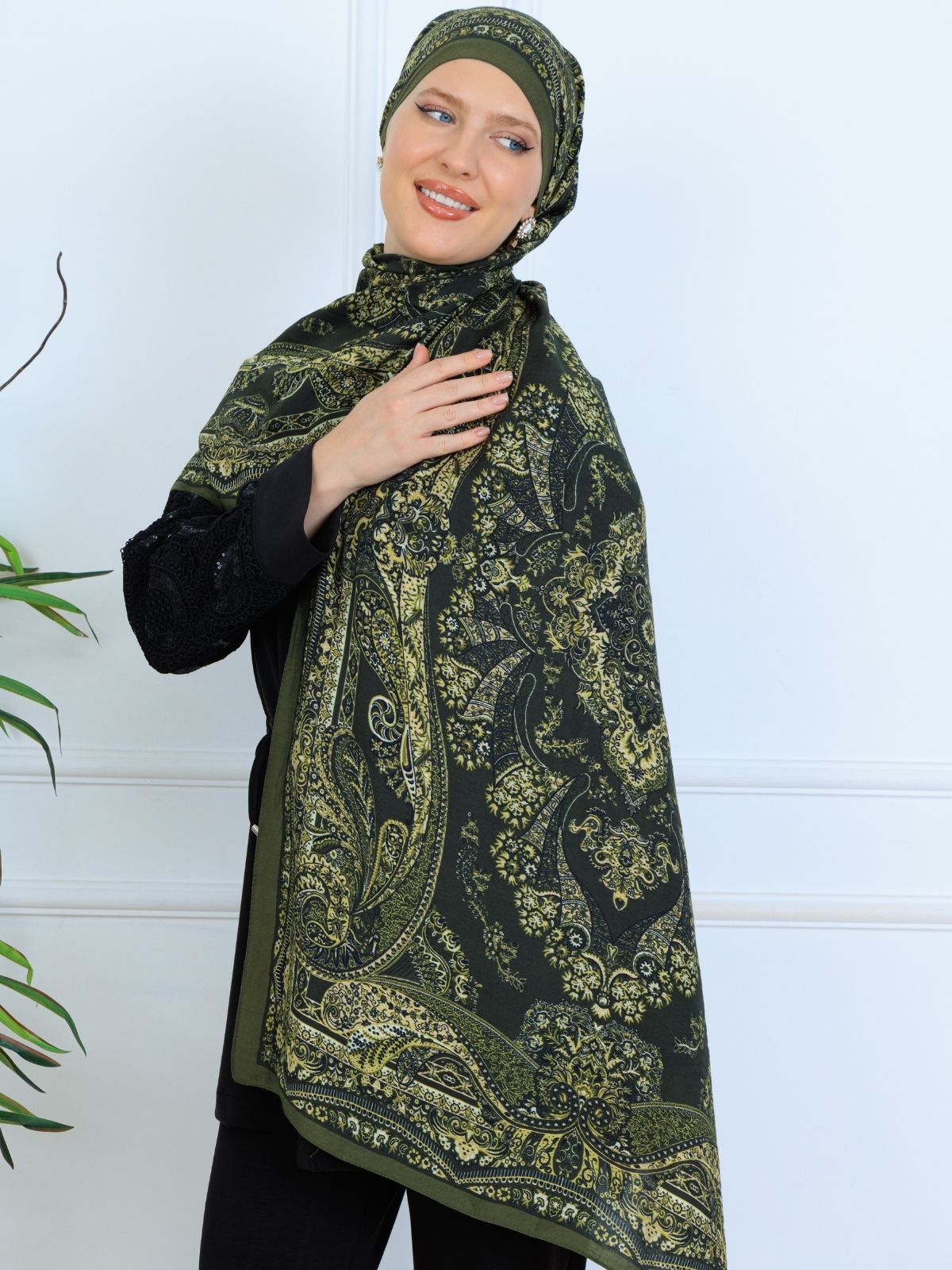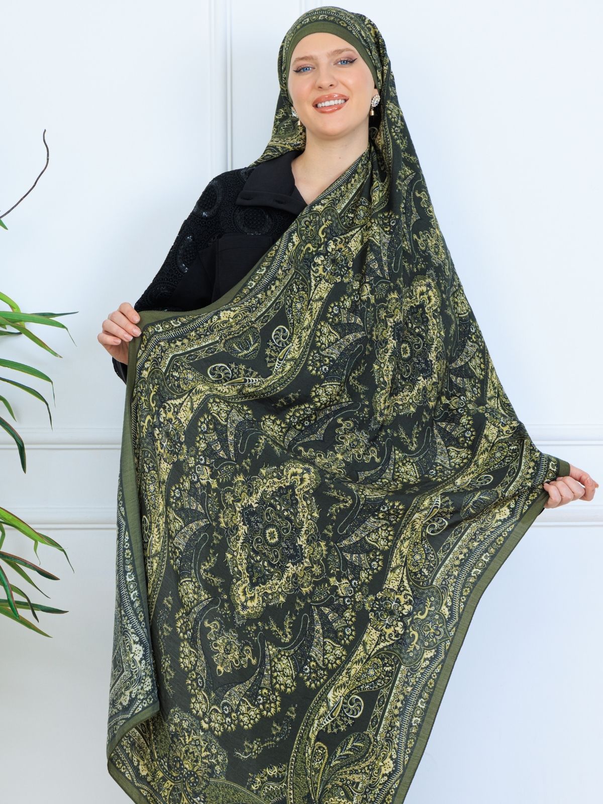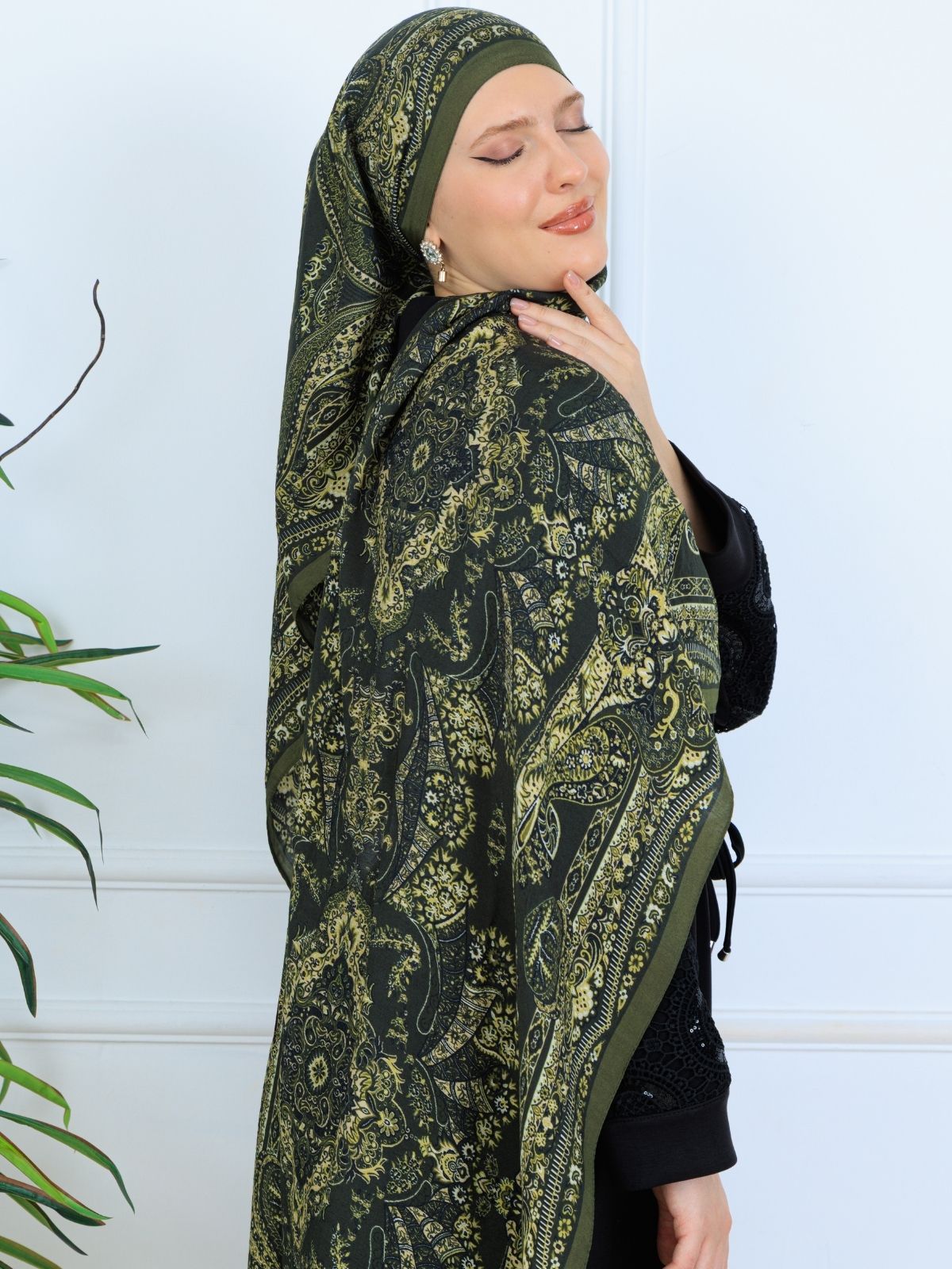 Ravza Desen Şal 469-019 – V-11 – Yağ Yeşili – Touch İpek