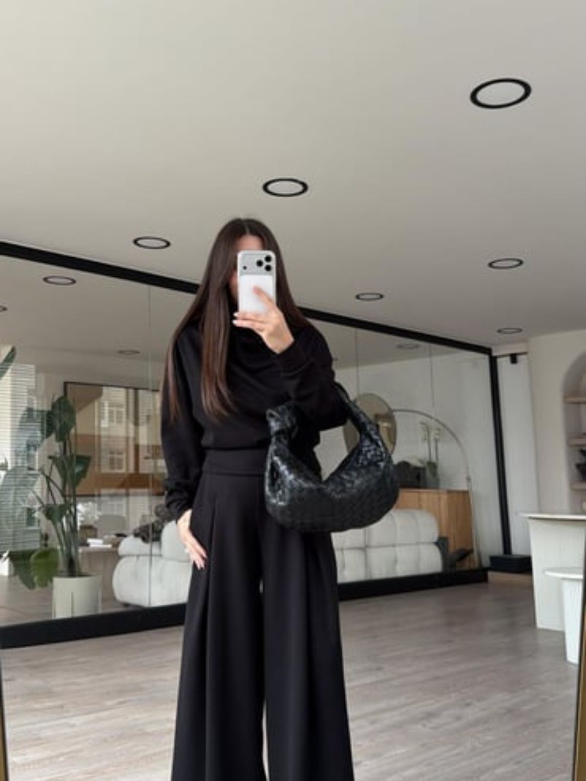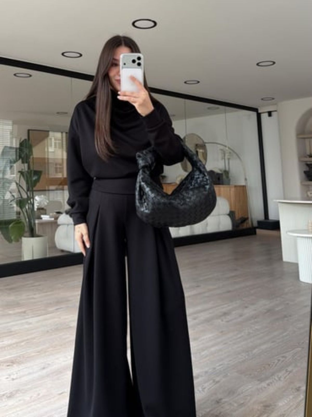 Boy / Kilo 160 cm / 48 kg Üst : Balıkçı Yaka , Uzun Kol / Alt : Cepli , Pile Detaylı , Geniş Paça
