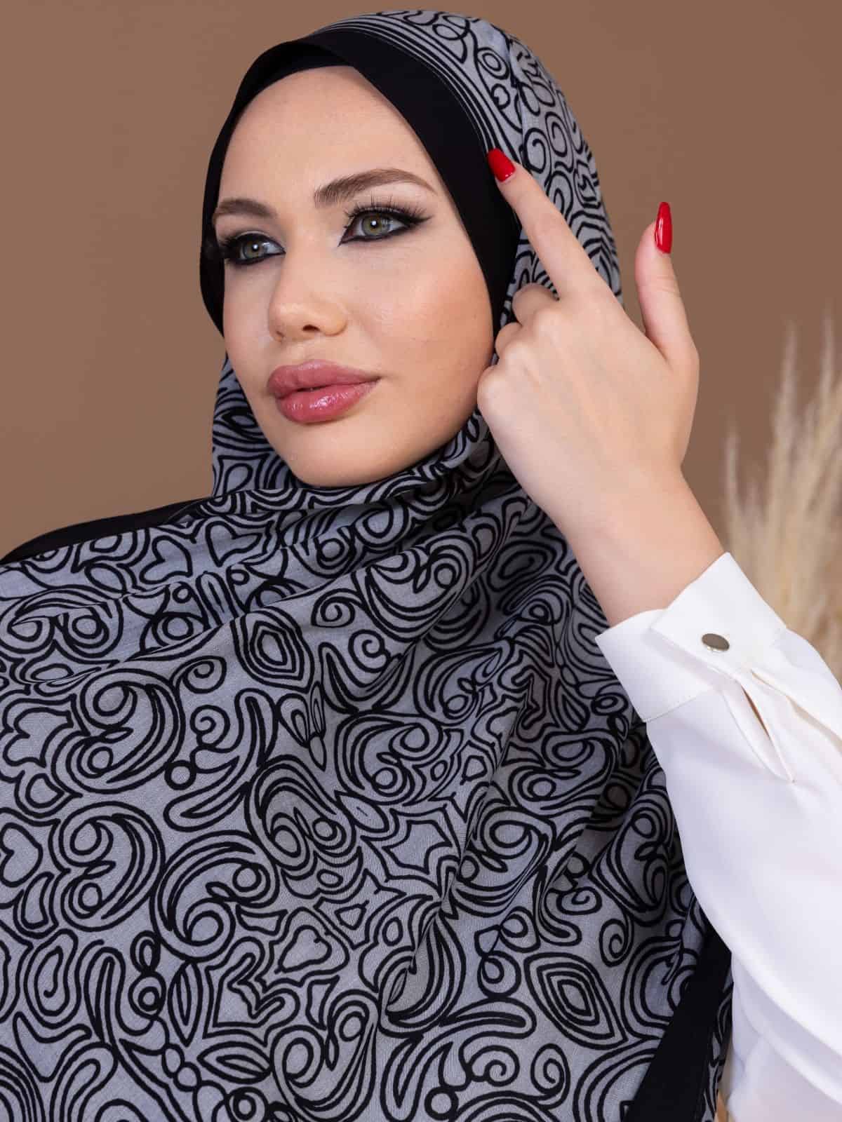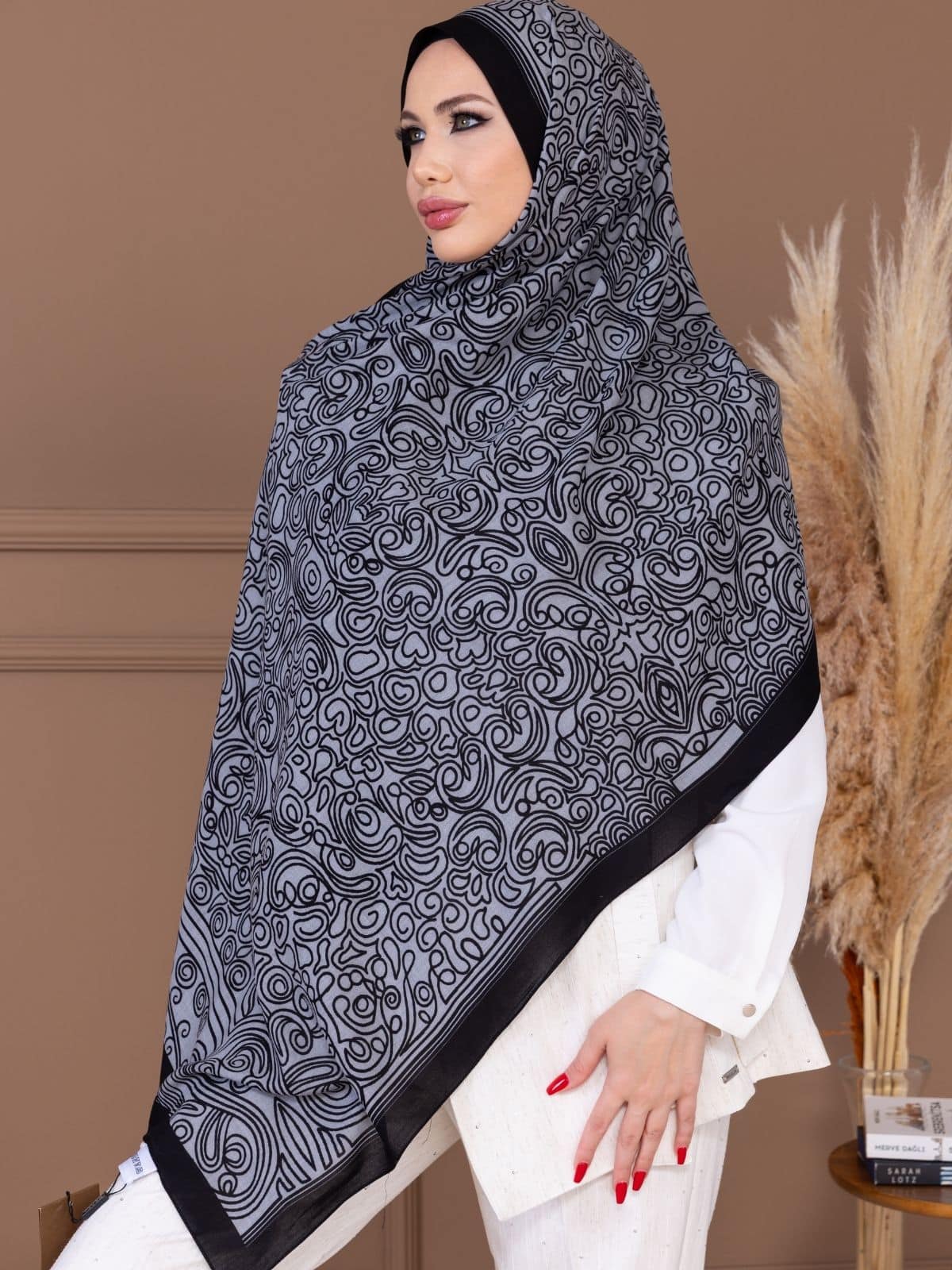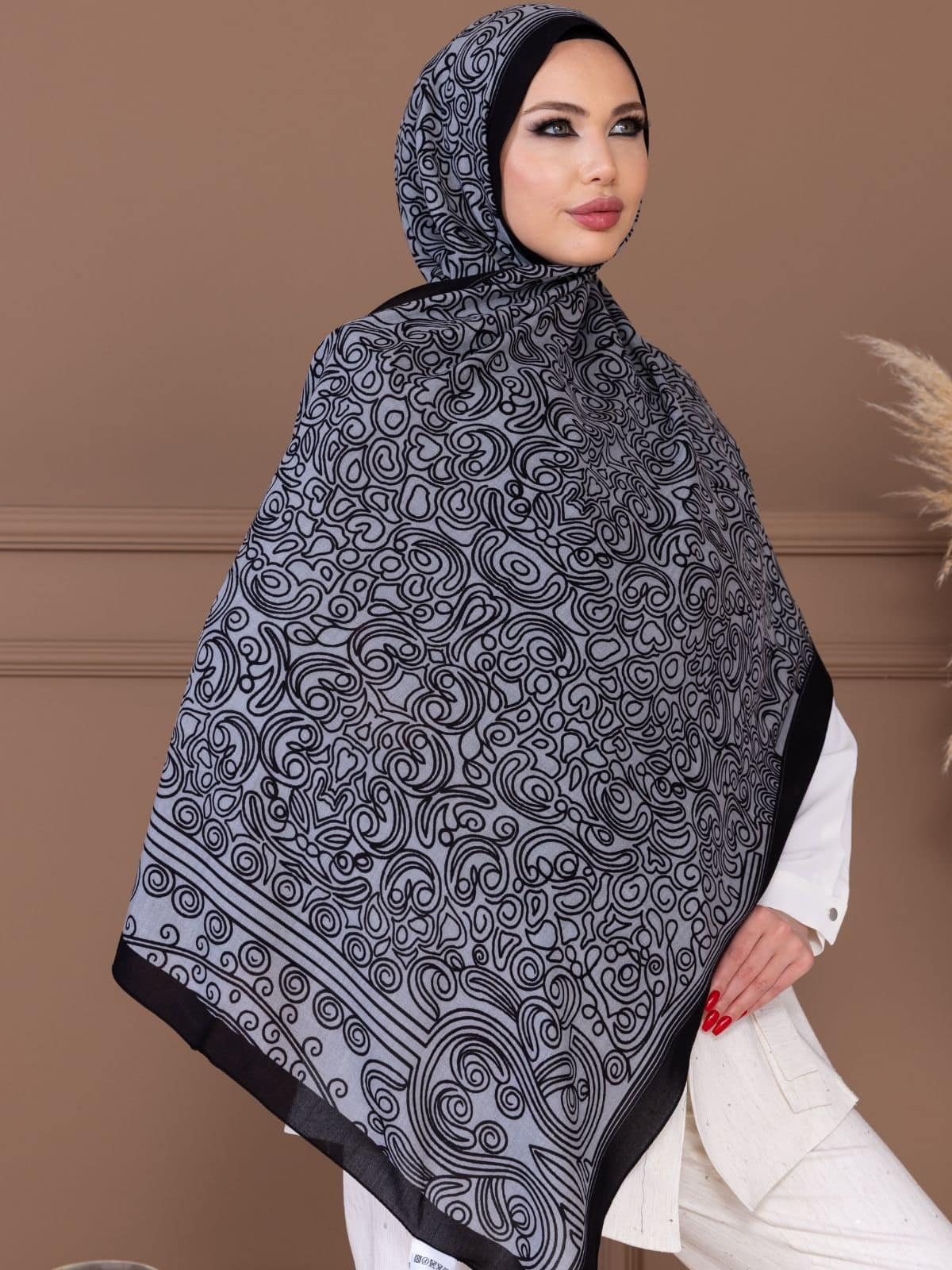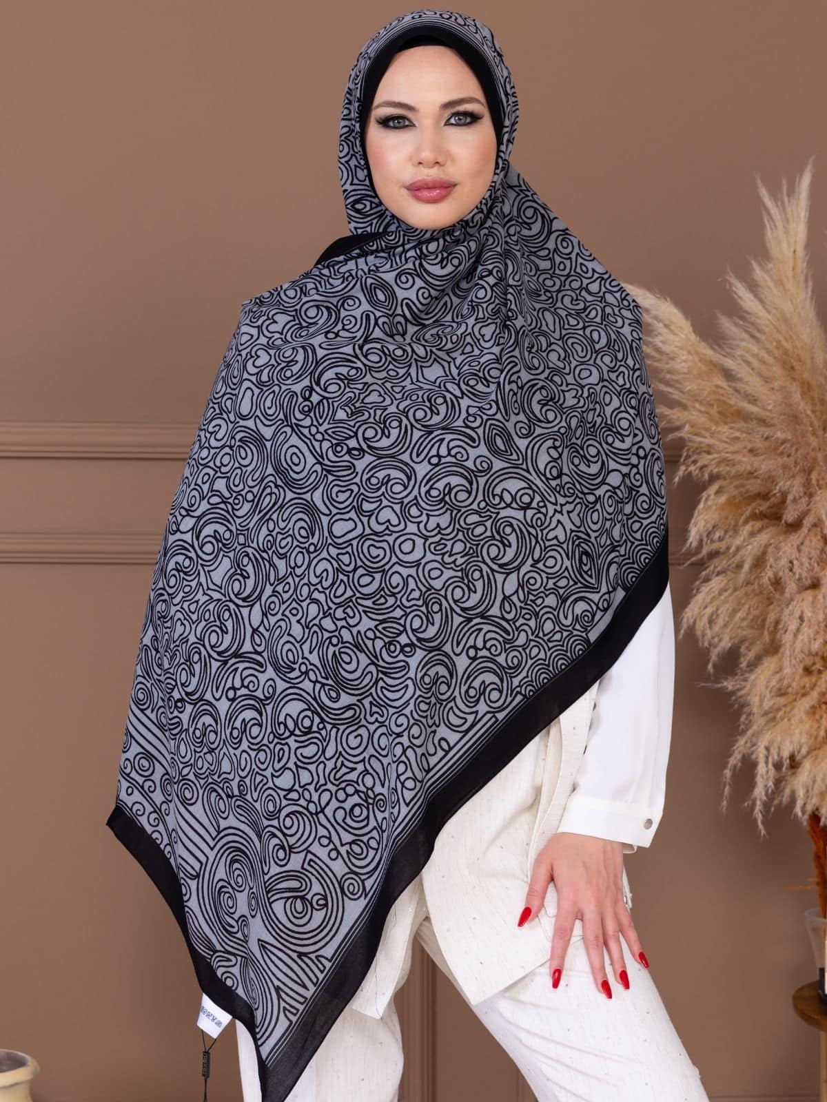Gri Ebruli Desen Pamuk İpek Şal – Touch İpek