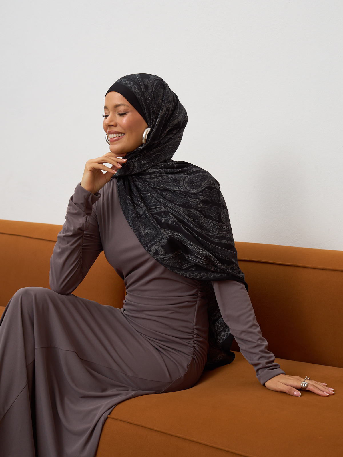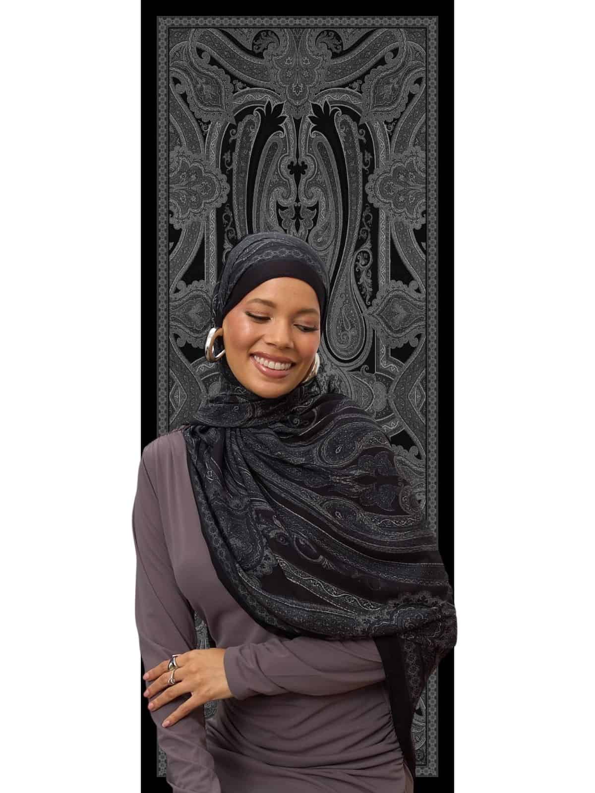 Siyah Etnik Desenli Pamuk İpek Şal – Touch İpek