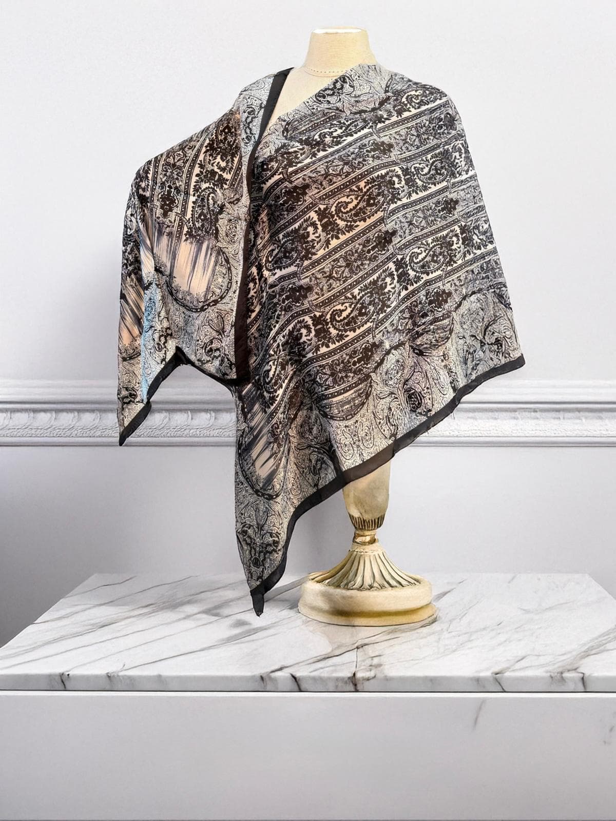 Siyah Retro Vual İpek Şal - oxygenipek