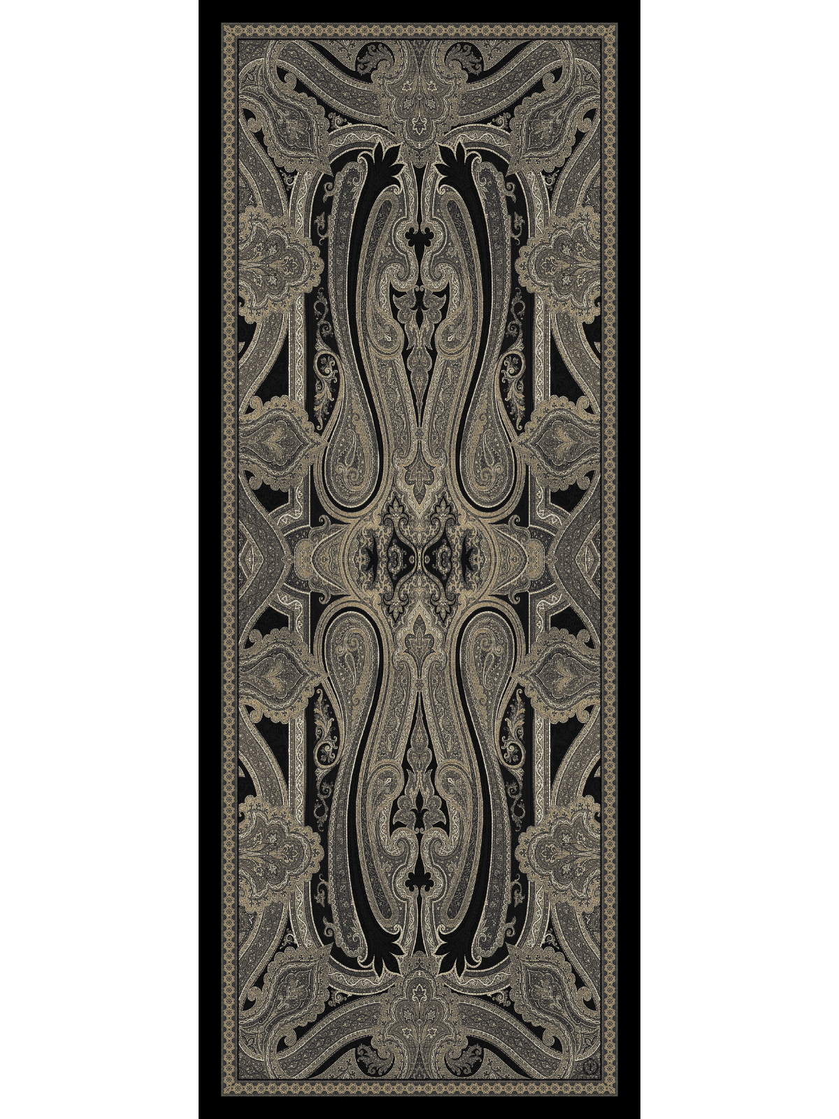Siyah Vizon Etnik Desenli Pamuk İpek Şal