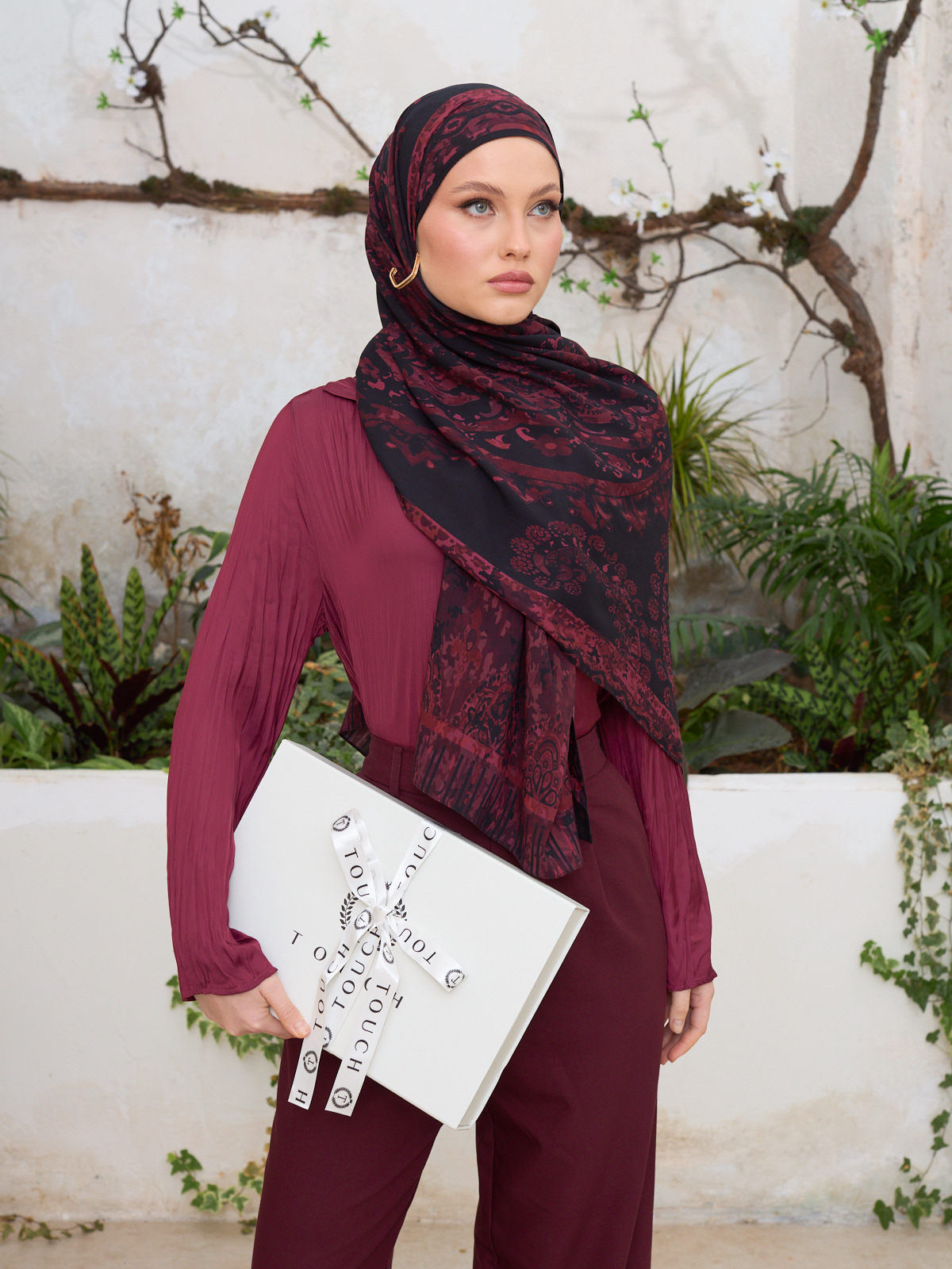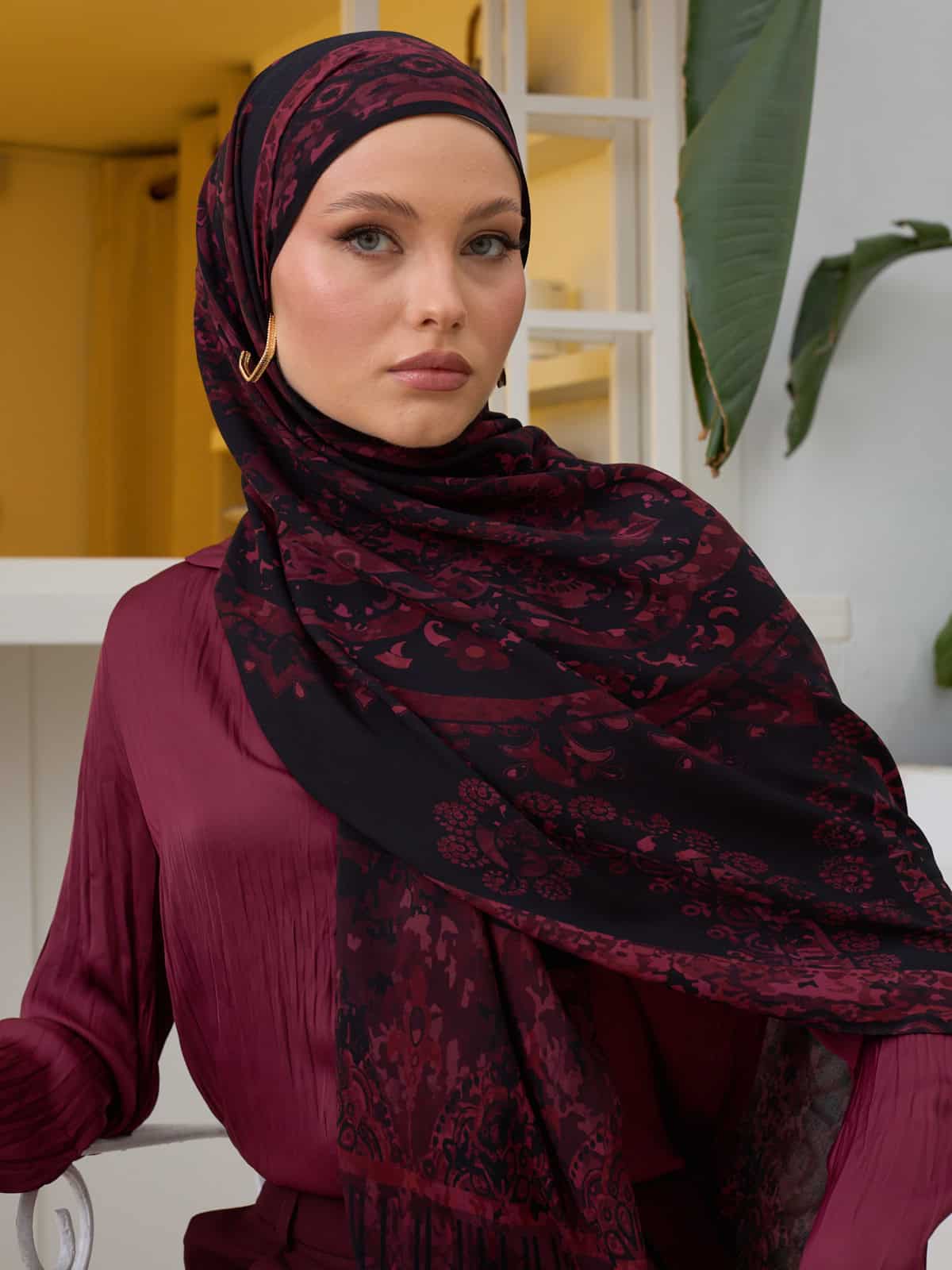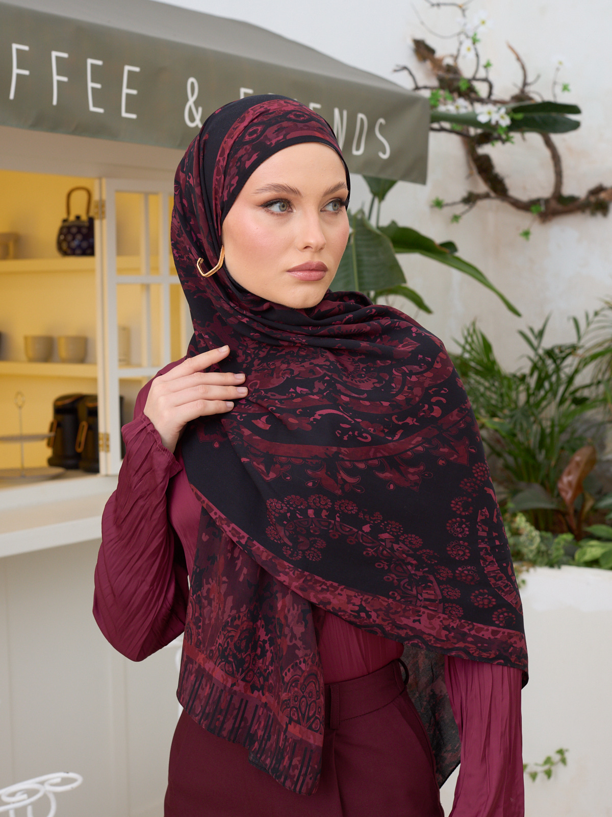 Şulemsinin seçimi Bordo SamanYolu Desen yün İpek Şal