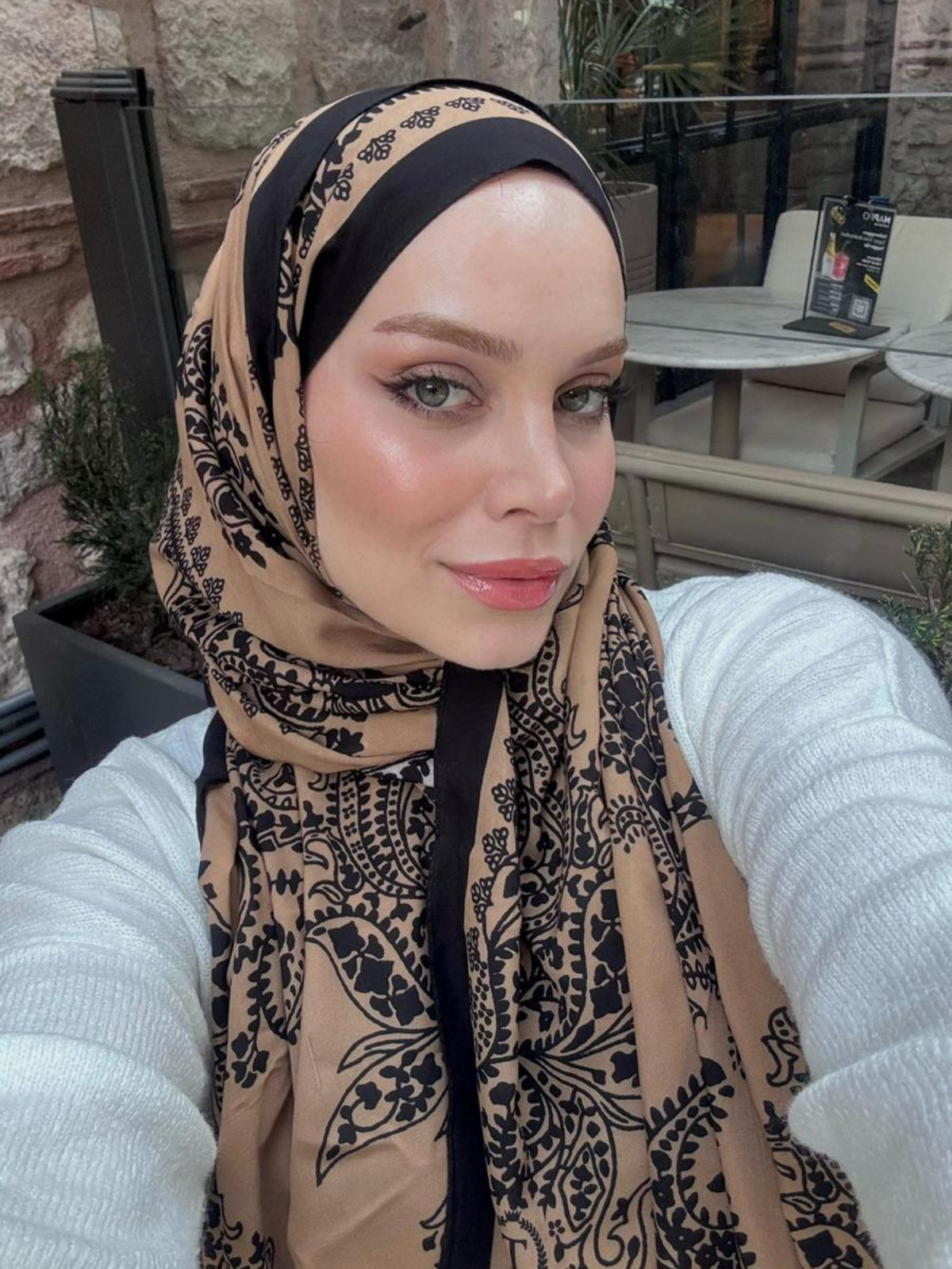 Sümeyyenin Seçimi Latte Aksa Desen Pamuk İpek Şal